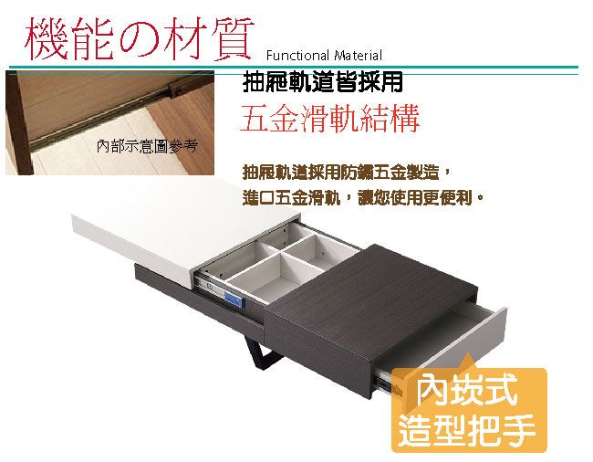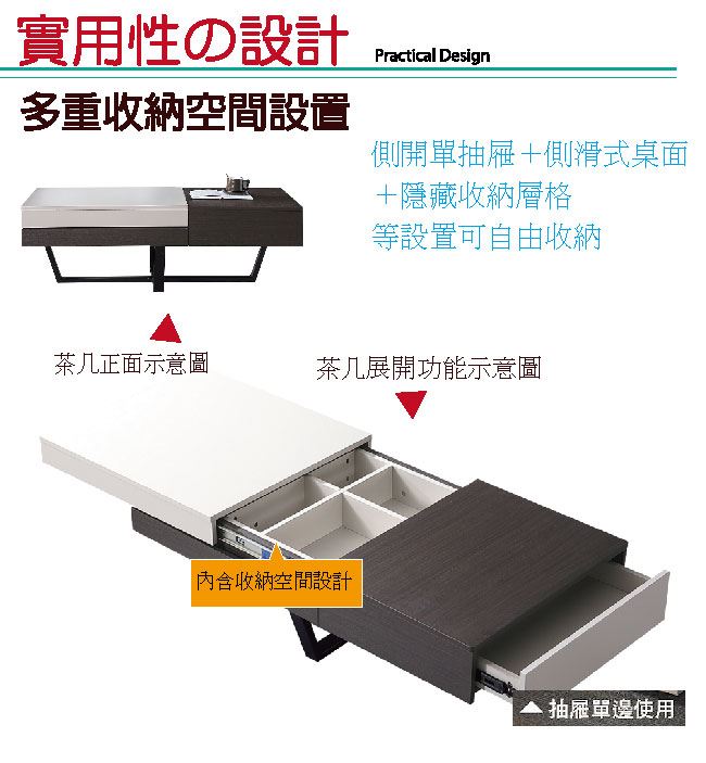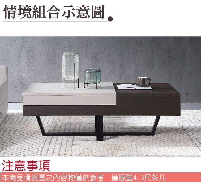 - ◆產品名稱:【綠家居】蘿卡爾4.3尺單抽雙色側拉桌面大茶几