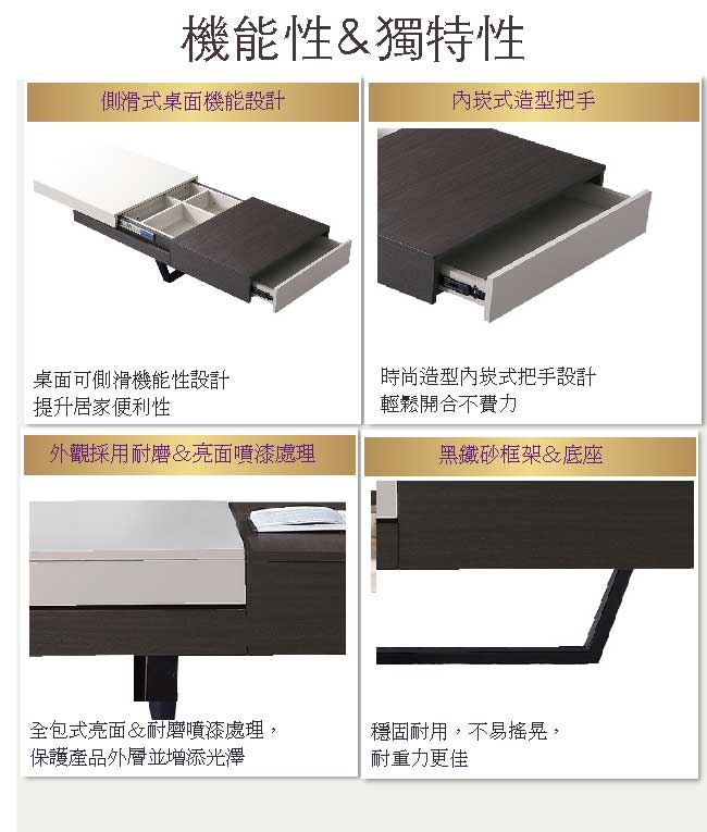- 單抽屜+側滑式桌面