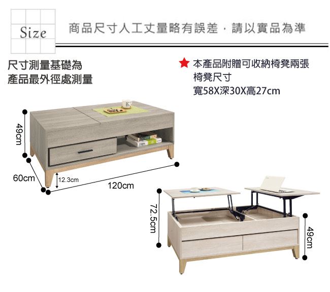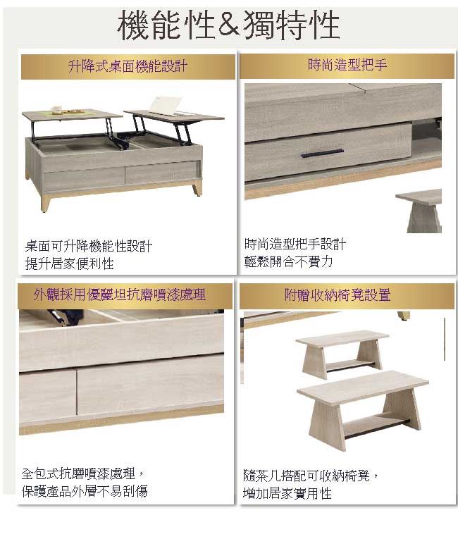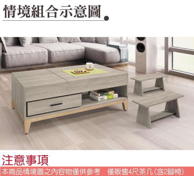 - ◆產品名稱:【綠家居】格瑪奇4尺升降機能大茶几(二色可選+內附小椅凳二張)