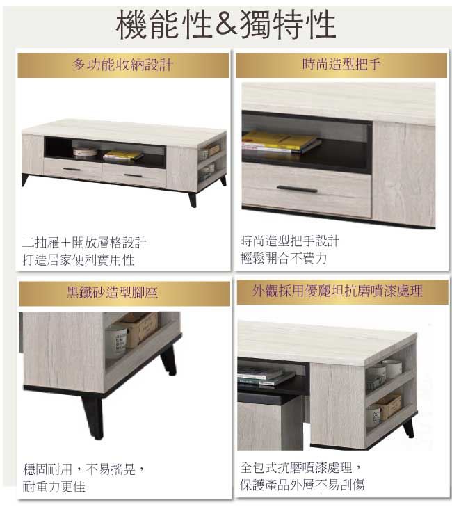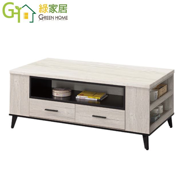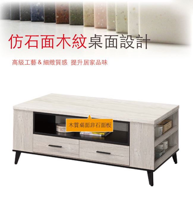 - ◆產品名稱:【綠家居】蘿柯4尺二抽木製大茶几(仿雲紋石面木質桌面板)