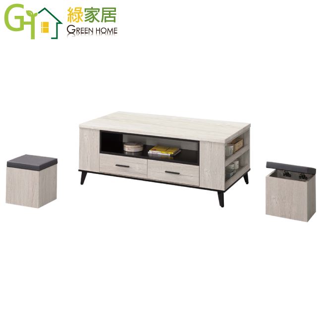 【綠家居】蘿柯4.3尺二抽木製大茶几(仿雲紋石面木質桌面板+內附小椅凳二張)