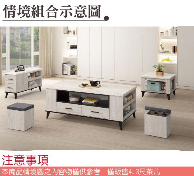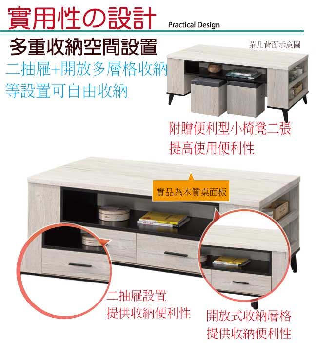 - ◆產品名稱:【綠家居】蘿柯4.3尺二抽木製大茶几(仿雲紋石面木質桌面板+內附小椅凳二張)