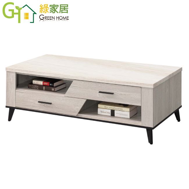 【綠家居】海克4尺二抽木製大茶几(仿雲紋石面木質桌面板)