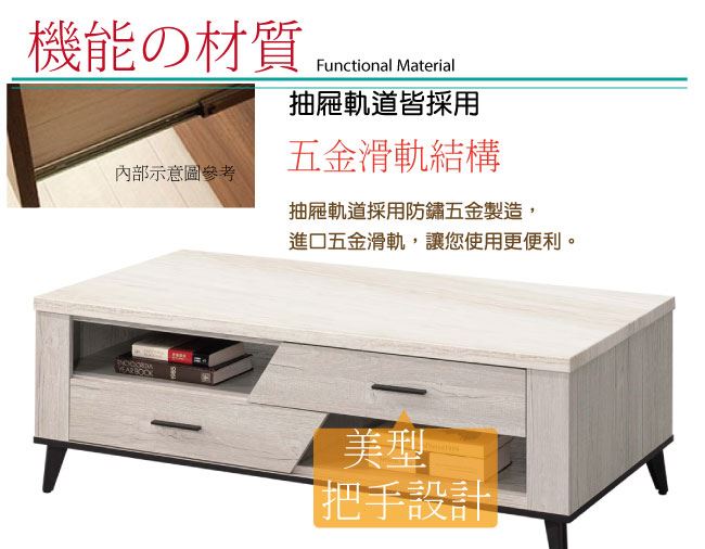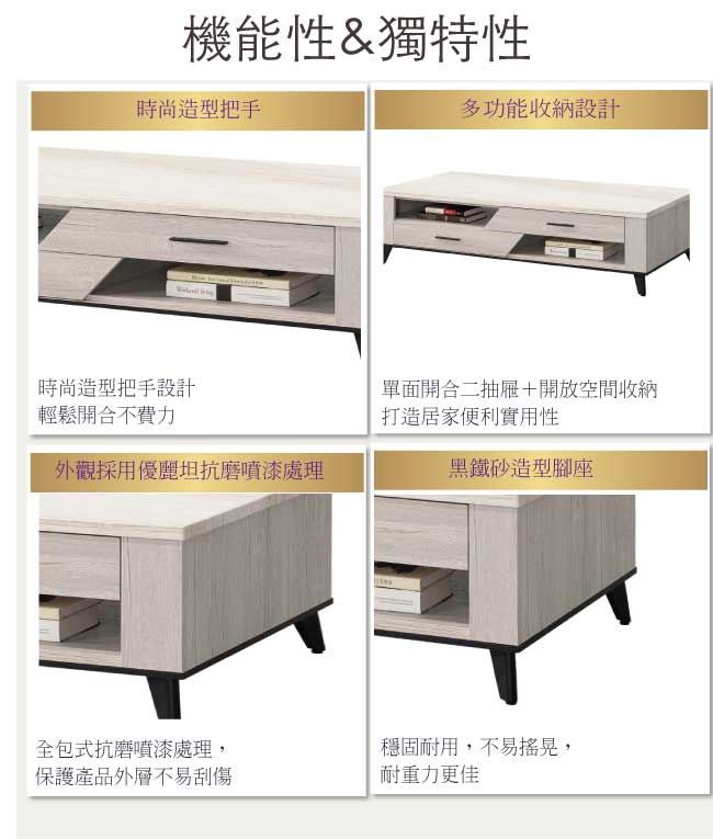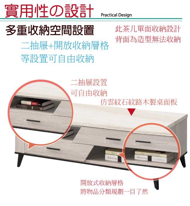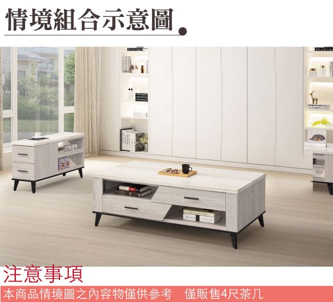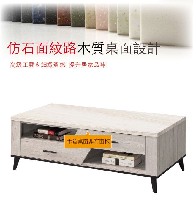 - ◆產品名稱:【綠家居】海克4尺二抽木製大茶几(仿雲紋石面木質桌面板)