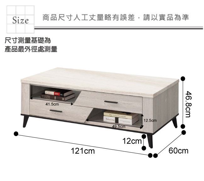 商 品 介 紹 | 【綠家居】海克4尺二抽木製大茶几(仿雲紋石面木質桌面板) 淺橡木紋色系+現代簡約風格+安心材質製造,整體採用防蛀木心板+防鏽黑漆腳座+五金滑軌結構+2cm仿雲紋石面木質桌面板等安心材質製造,產品外層採用防潮耐磨噴漆處理搭配採用單面開合二抽屜+內&外開放式收納等空間設計,全由專人配送到家,專業安心服務,替你省下更多時間! 【商品特色】 淺橡木紋色系+現代簡約風格+安心材質製造,使用放心+搭配居家更便利 採用防蛀木心板+防鏽黑漆腳座+五金滑軌結構+2cm仿雲紋石面木質桌面板等安心材質製造 產品外層採用防潮耐磨噴漆處理 搭配採用單面開合二抽屜+內&外開放式收納等空間設計 此商品不需要DIY組立,此商品為組立後之成品 全由專人配送到家,專業安心服務,替您省下更多時間