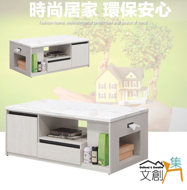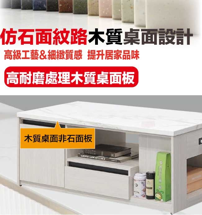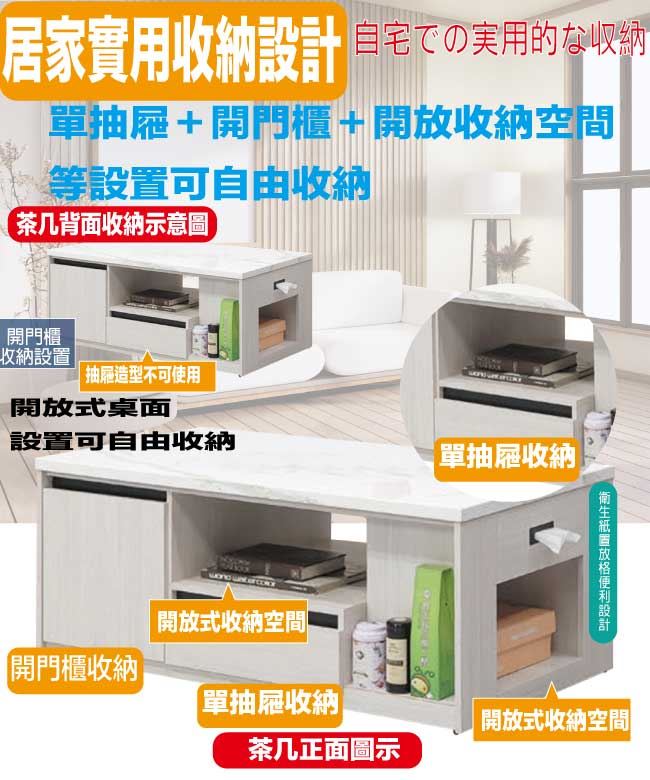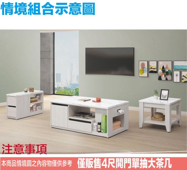 【綠家居】卡奇里4尺白榆木紋開門單抽大茶几