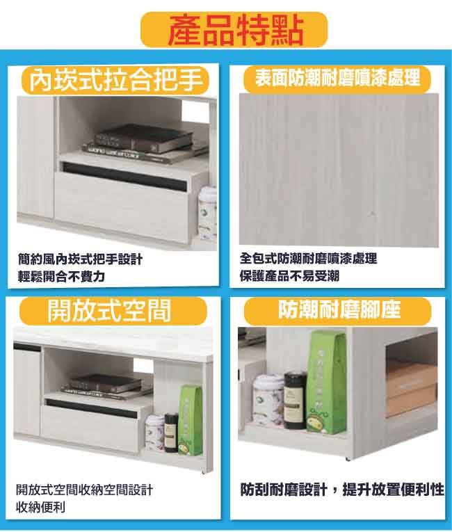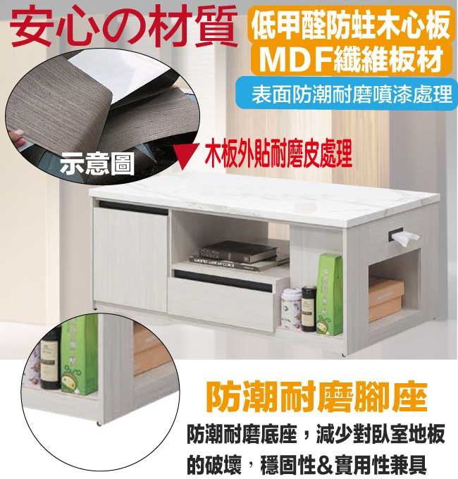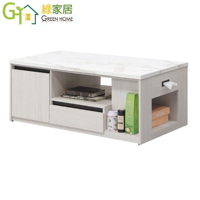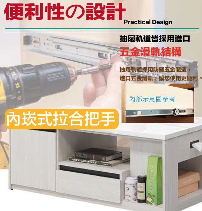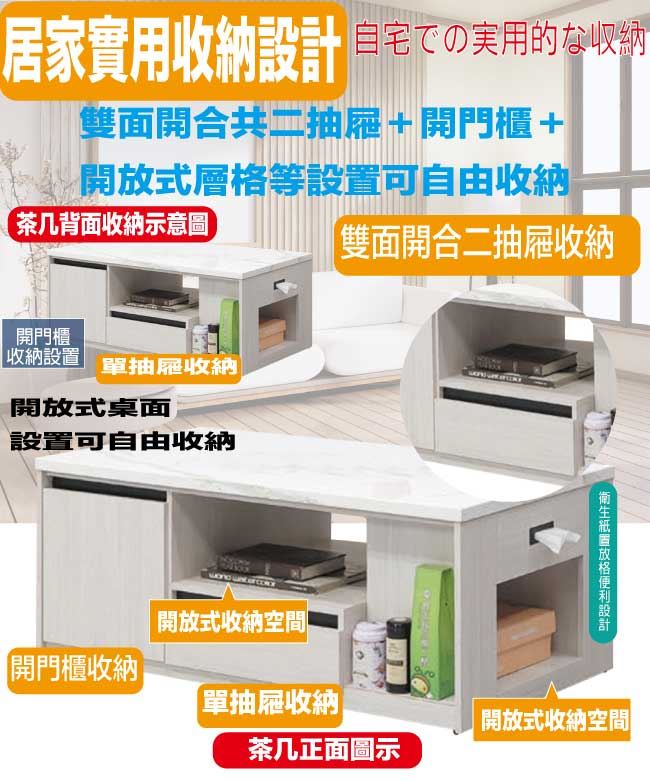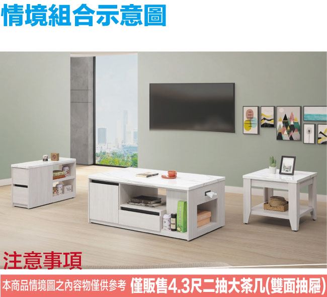 【綠家居】卡奇里4.3尺白榆木紋雙面使用開門二抽大茶几