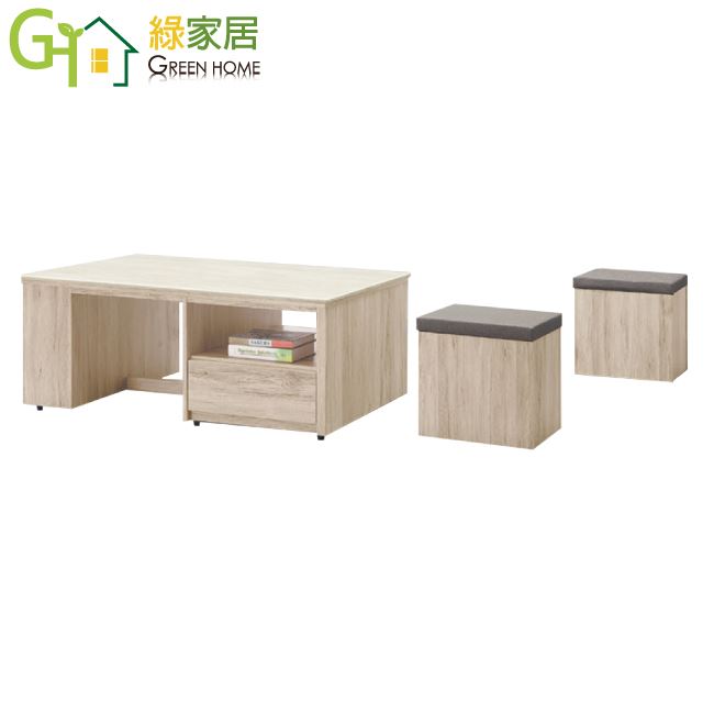 【綠家居】柏森4尺雲紋石面大茶几(附收納椅凳二張)