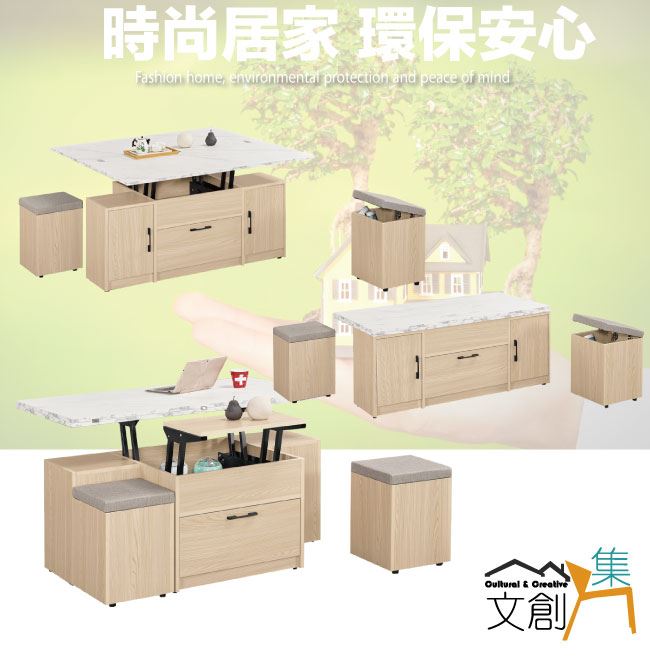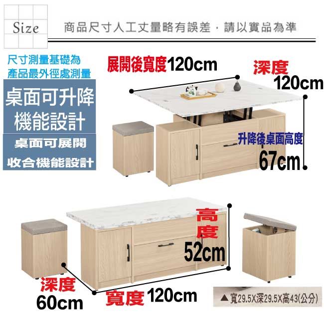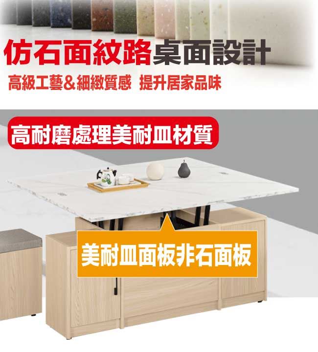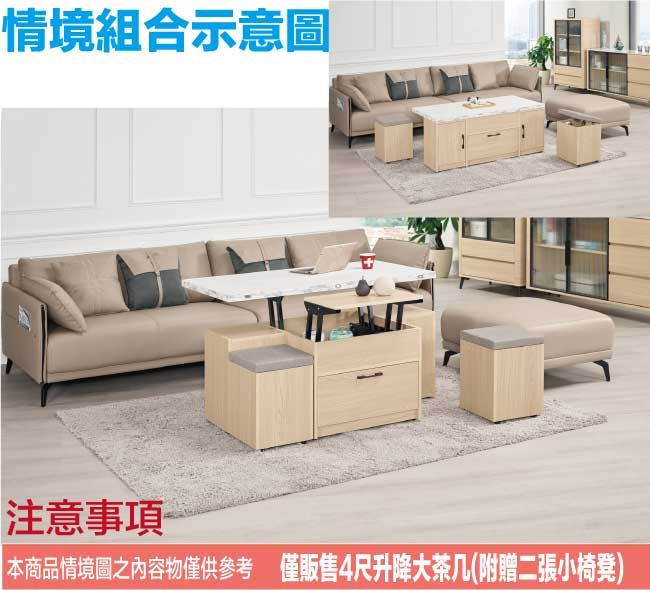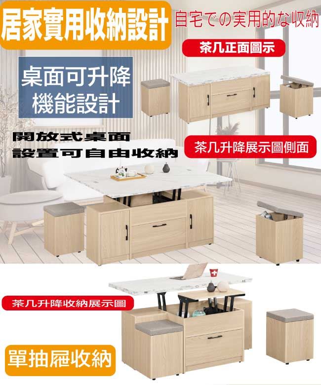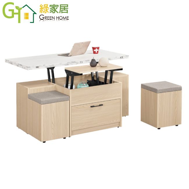 【綠家居】維爾4尺升降機能大茶几(附贈可收納椅凳二張)
