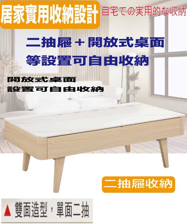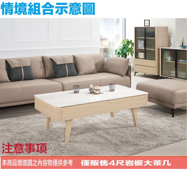 商 品 介 紹 | 【綠家居】維爾4尺岩板二抽大茶几 木紋雙色系+現代簡約風格+安心材質製造,整體採用防蛀木心板+防潮木質腳座+12mm高硬度岩板桌面板+五金滑軌結構等安心材質製造,產品外層採用防潮耐磨噴漆處理搭配採用二抽屜+開放式收納等收納空間設計,全由專人配送到家,專業安心服務,替你省下更多時間! 【商品特色】 木紋雙色系+現代簡約風格+安心材質製造,使用放心+搭配居家更便利 採用防蛀木心板+防潮木質腳座+12mm高硬度岩板桌面板+五金滑軌結構等安心材質製造 搭配採用二抽屜+開放式收納等收納空間設計 此商品不需要DIY組立,此商品為組立後之成品 品質保證、專業設計、貼心服務 全由專人配送到家,專業安心服務,替您省下更多時間