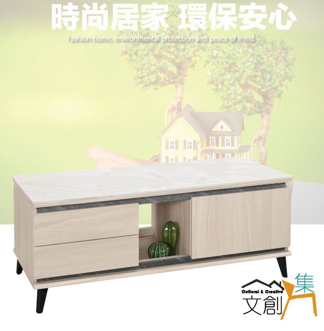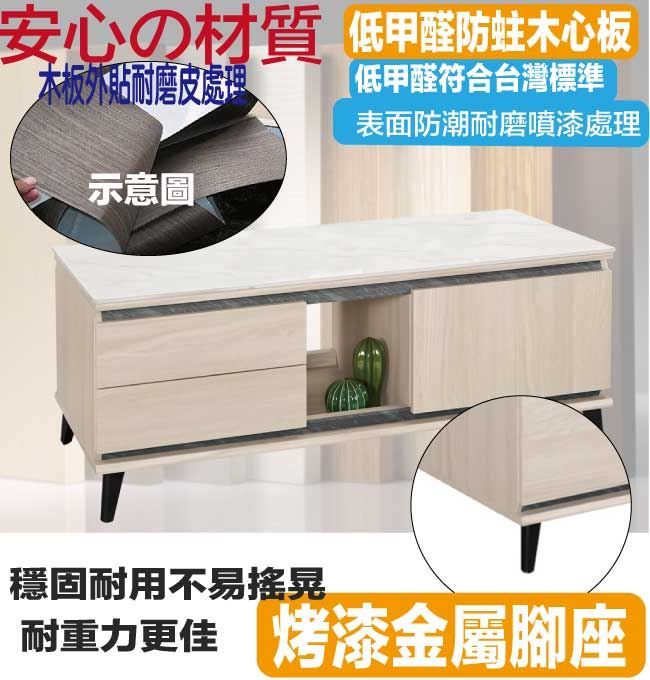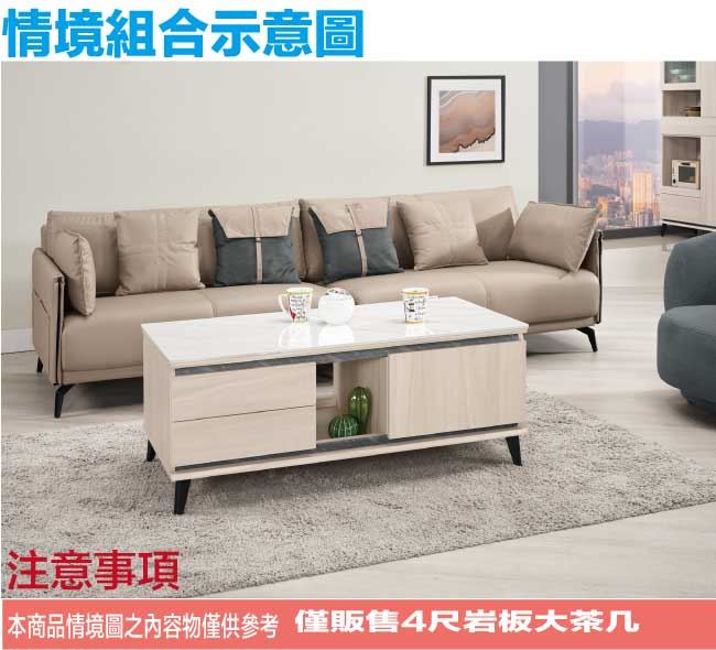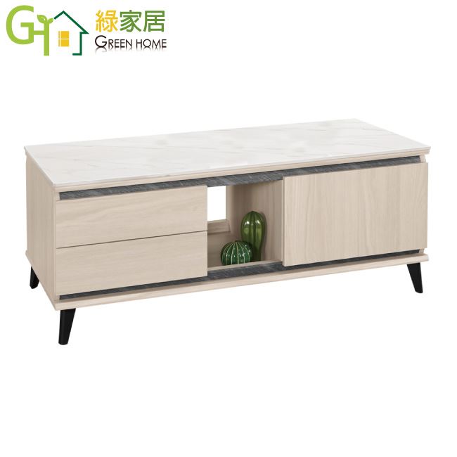 【綠家居】納莉爾4尺岩板開門四抽大茶几