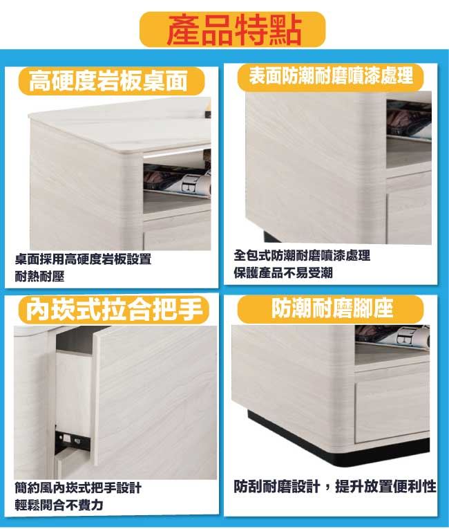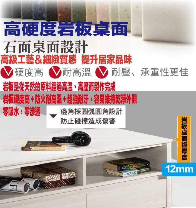 材質 | ◆產品名稱:【綠家居】莉諾爾四抽4尺岩板雙面大茶几 尺寸:(寬)120x(深)60(高)46/公分 ◆材質: 材質:防蛀木心板+防潮耐磨底座+12mm高硬度岩板桌面板+五金滑軌結構 表面防潮耐磨噴漆處理 |