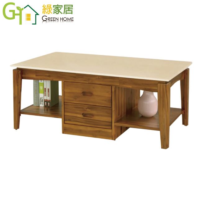 【綠家居】拉瑪實木4.3尺雲紋石面&岩板大茶几(二色可選)