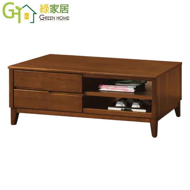 【綠家居】胡立歐淺胡桃5尺二抽實木大茶几