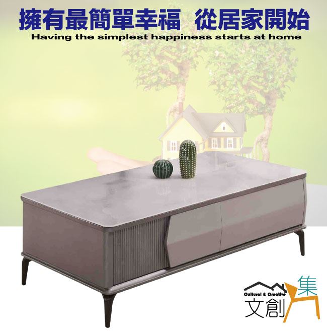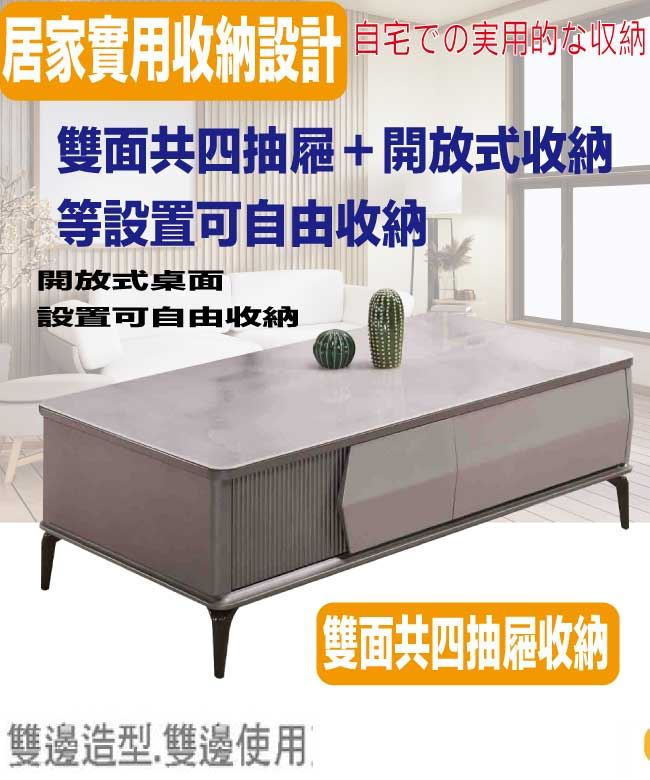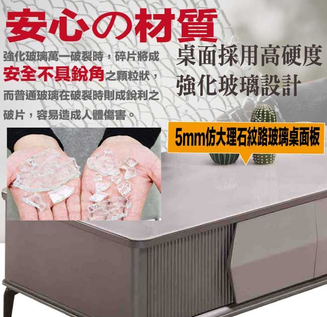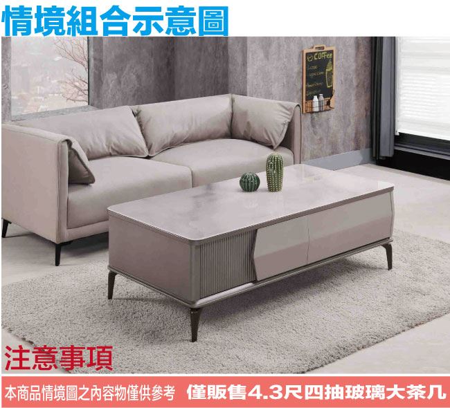 【綠家居】黛梅4.3尺玻璃四抽大茶几