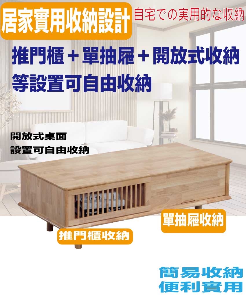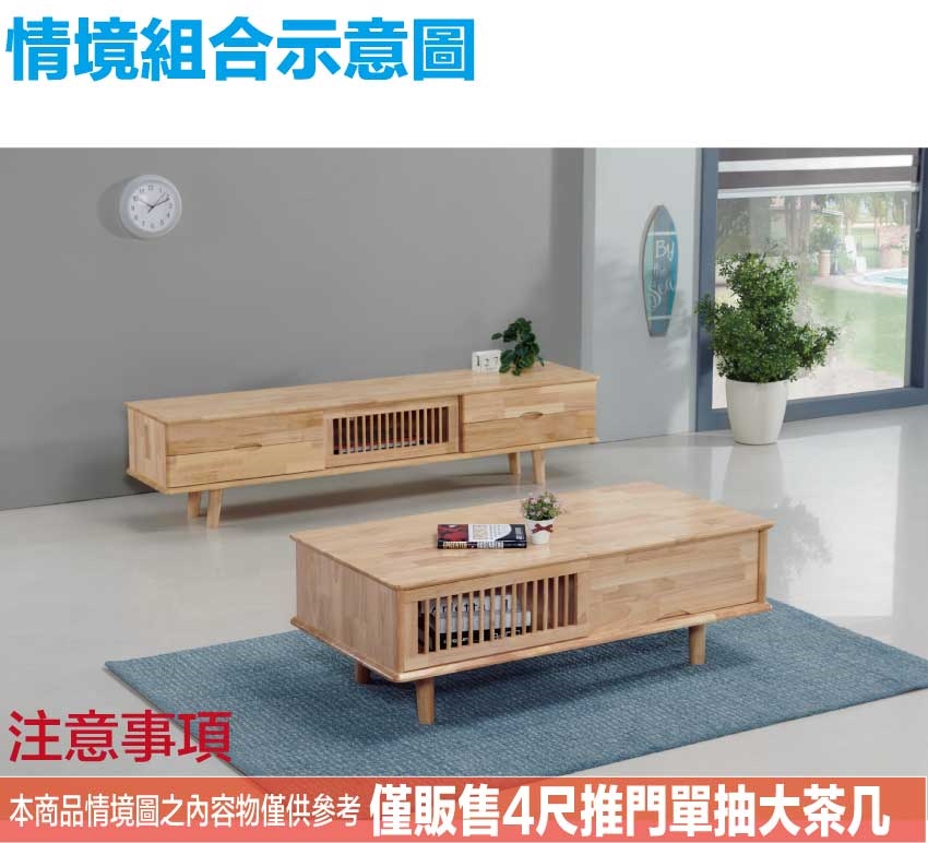 - ◆產品名稱:【綠家居】達歐實木4尺推門單抽大茶几