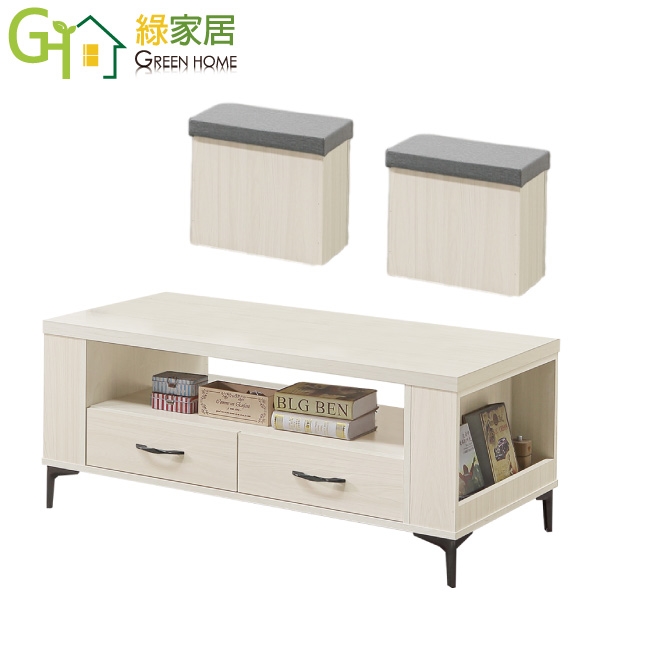 【綠家居】瑞秋4尺二抽大茶几(附收納椅凳二張)