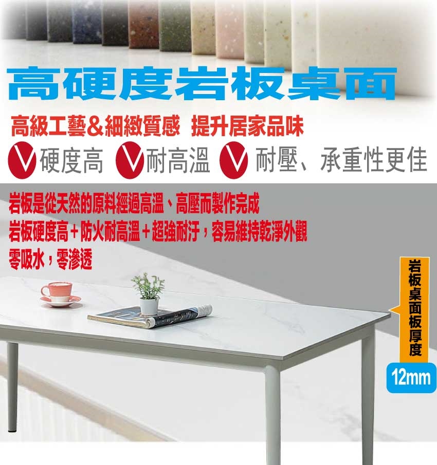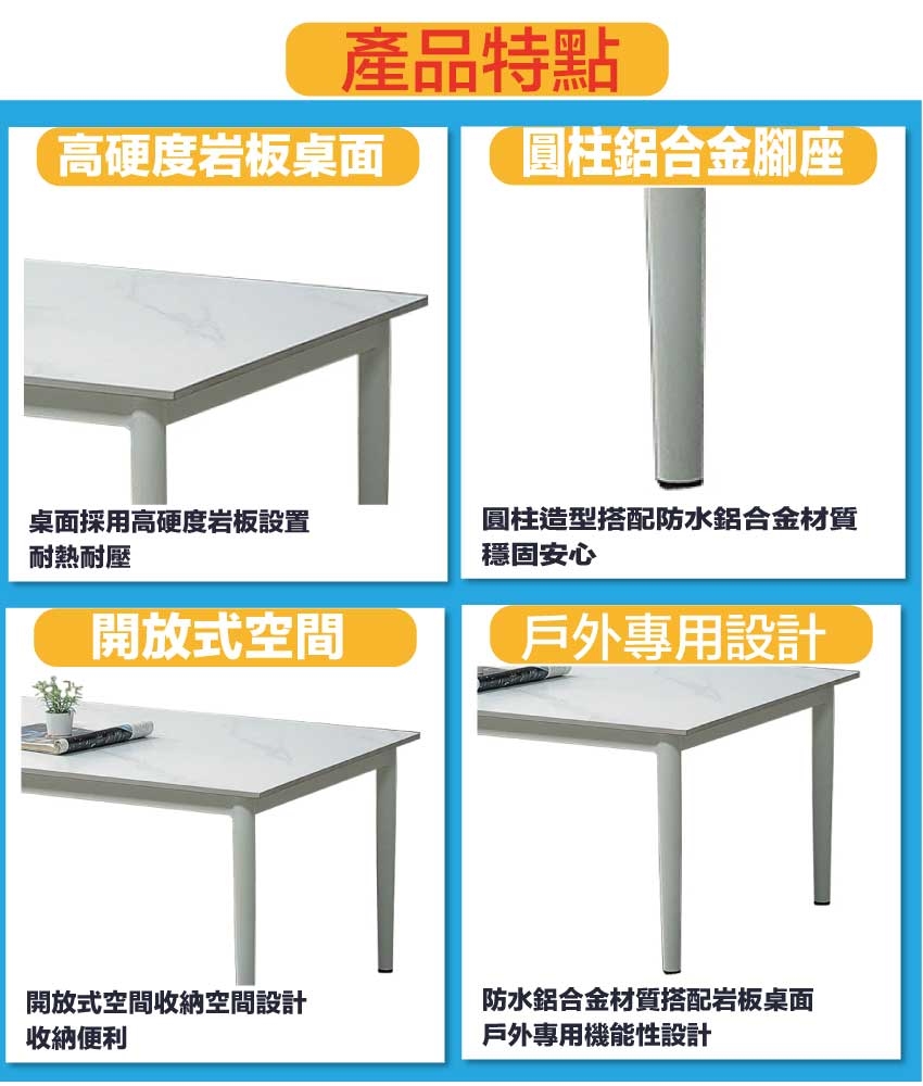 材質:防水鋁合金骨架&圓柱腳座+12mm高硬度岩板