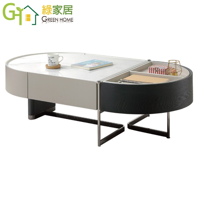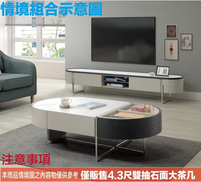 【綠家居】弗卡4.3尺雲紋石面二抽大茶几