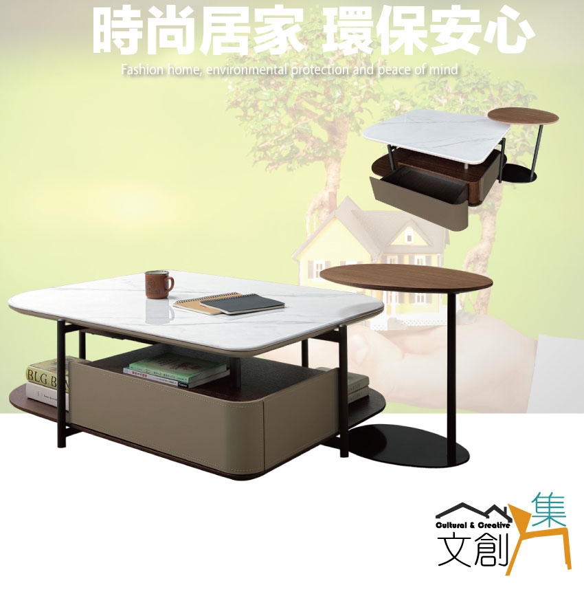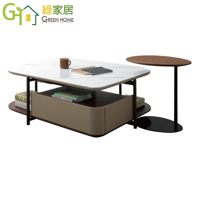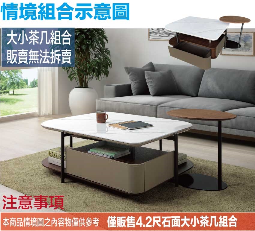 【綠家居】英格4.2尺雲紋石面單抽大小茶几組合