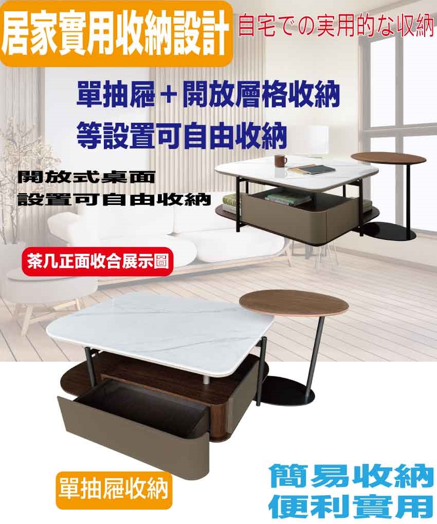 - ◆產品名稱:【綠家居】英格4.2尺雲紋石面單抽大小茶几組合