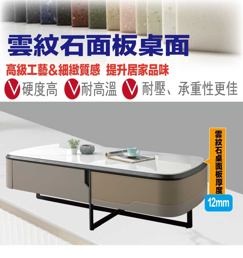 【綠家居】克愛德4.3尺雲紋石面三抽大茶几