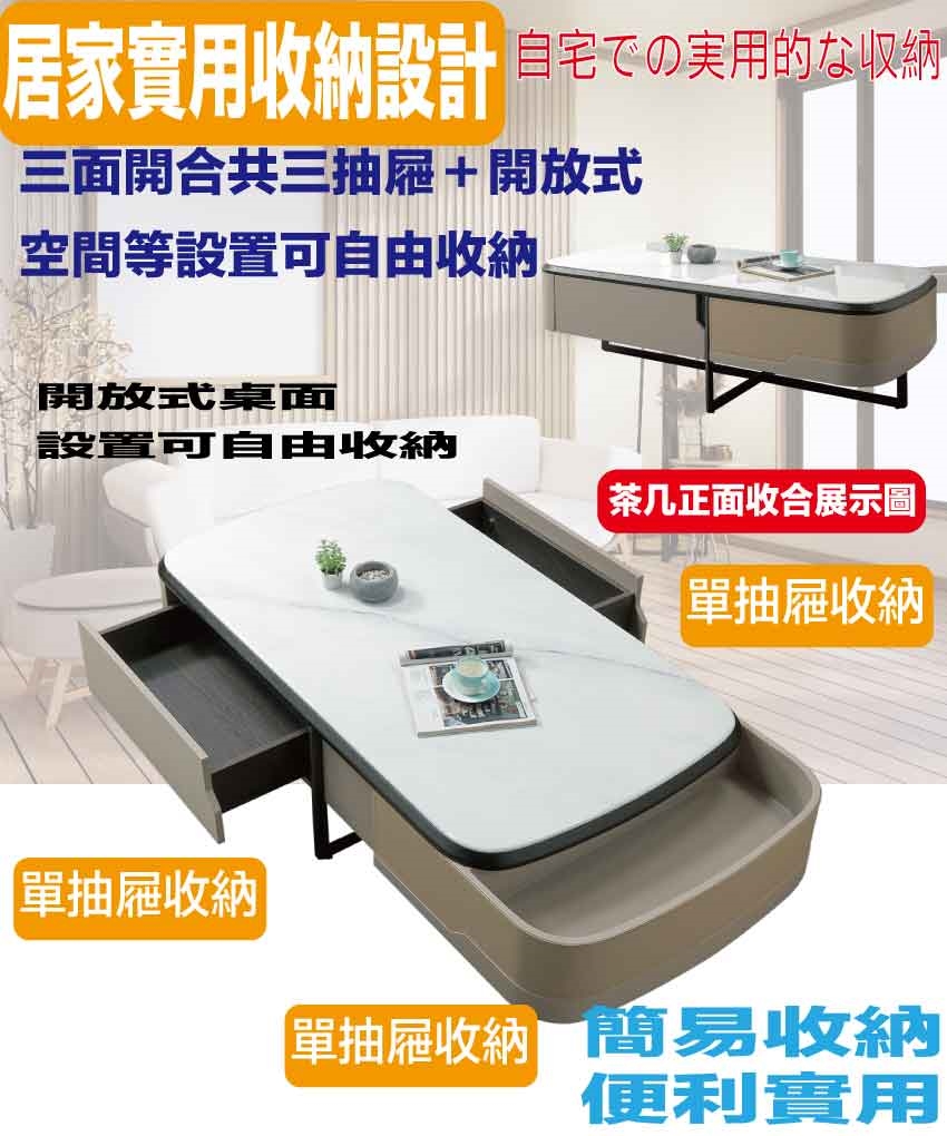 搭配採用三面開合三抽屜+開放桌面等收納空間設計