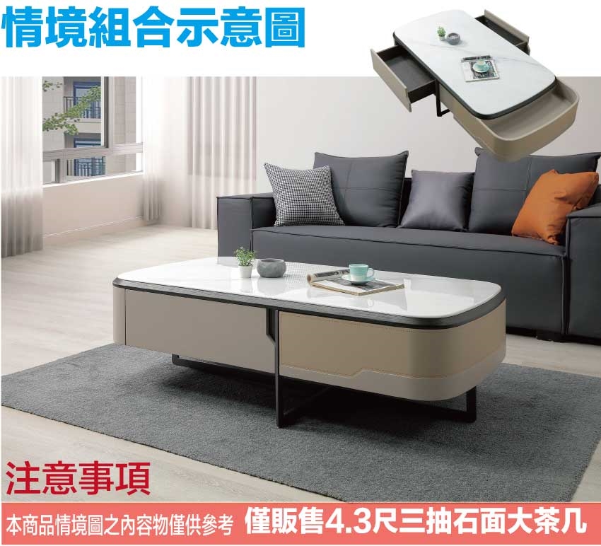 - ◆產品名稱:【綠家居】克愛德4.3尺雲紋石面三抽大茶几
