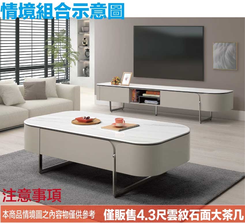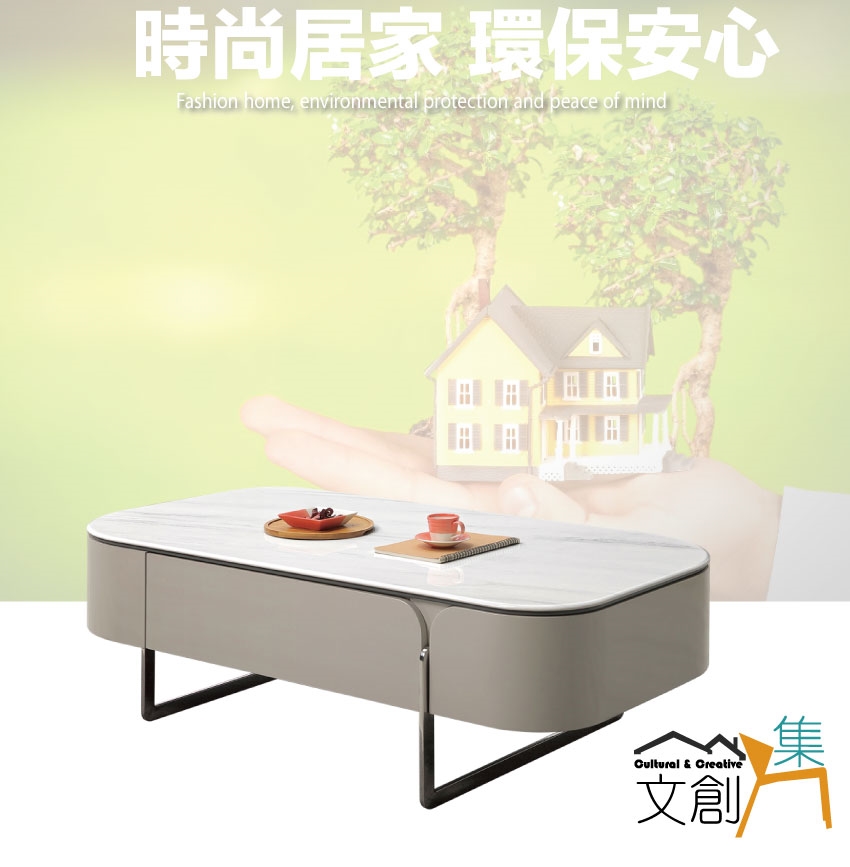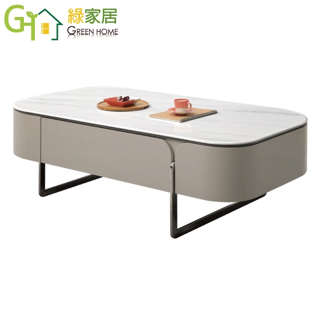 【綠家居】愛莎4.3尺雲紋石面二抽大茶几