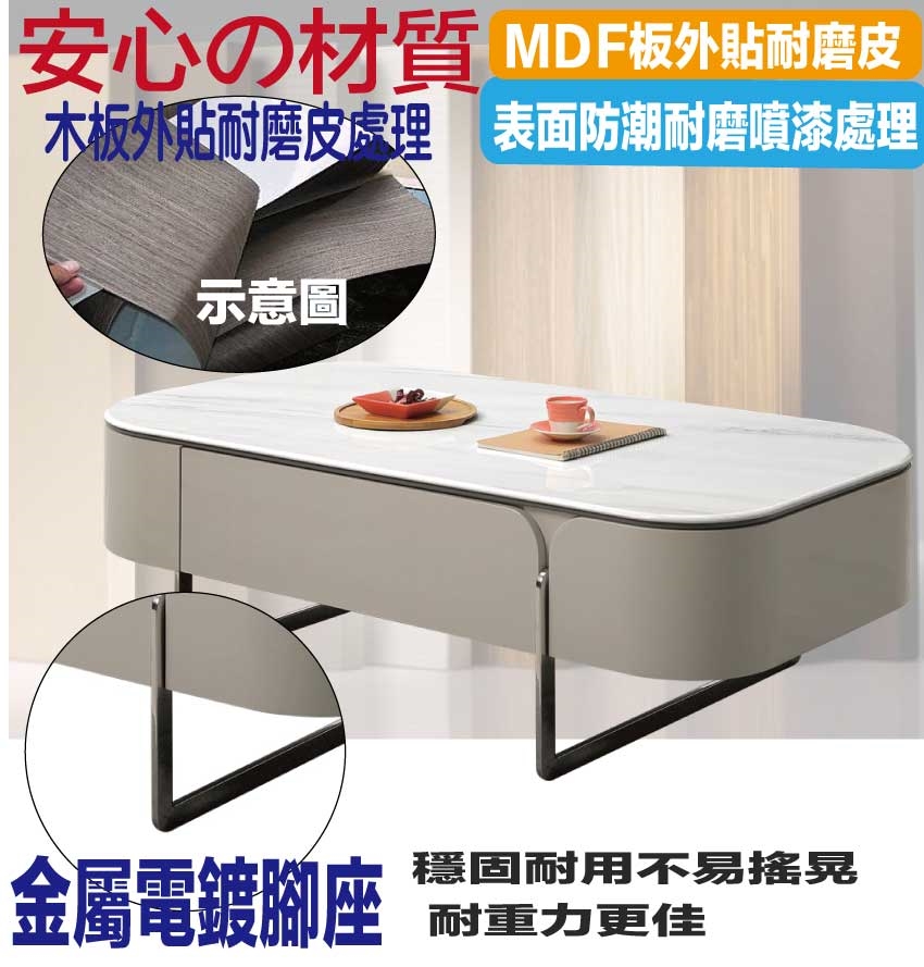 - ◆產品名稱:【綠家居】愛莎4.3尺雲紋石面二抽大茶几