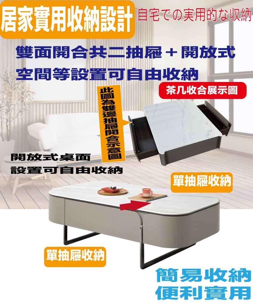 搭配採用雙面開合二抽屜+開放桌面等收納空間設計
