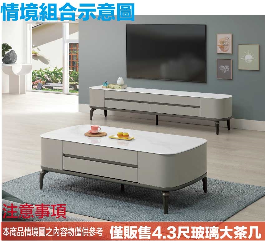 ★偏遠地區需額外加收運費,下標請先問與答詢問★ ★下訂前注意 由於商品流動較快,下訂前請先詢問是否有貨在下訂喔~★ 【綠家居】德爾4.3尺玻璃二抽大茶几 現代雙色系+安心材質製造,使用放心+搭配居家更便利,採用防潮MDF板+烤漆五金腳座+五金滑軌結構+8mm仿大理石紋強化玻璃桌面板等安心材質製造 ,外層採用防潮耐磨噴漆處理搭配採用雙面開合二抽屜+開放桌面等收納空間設計,全由專人配送到家,專業安心服務,替你省下更多時間!