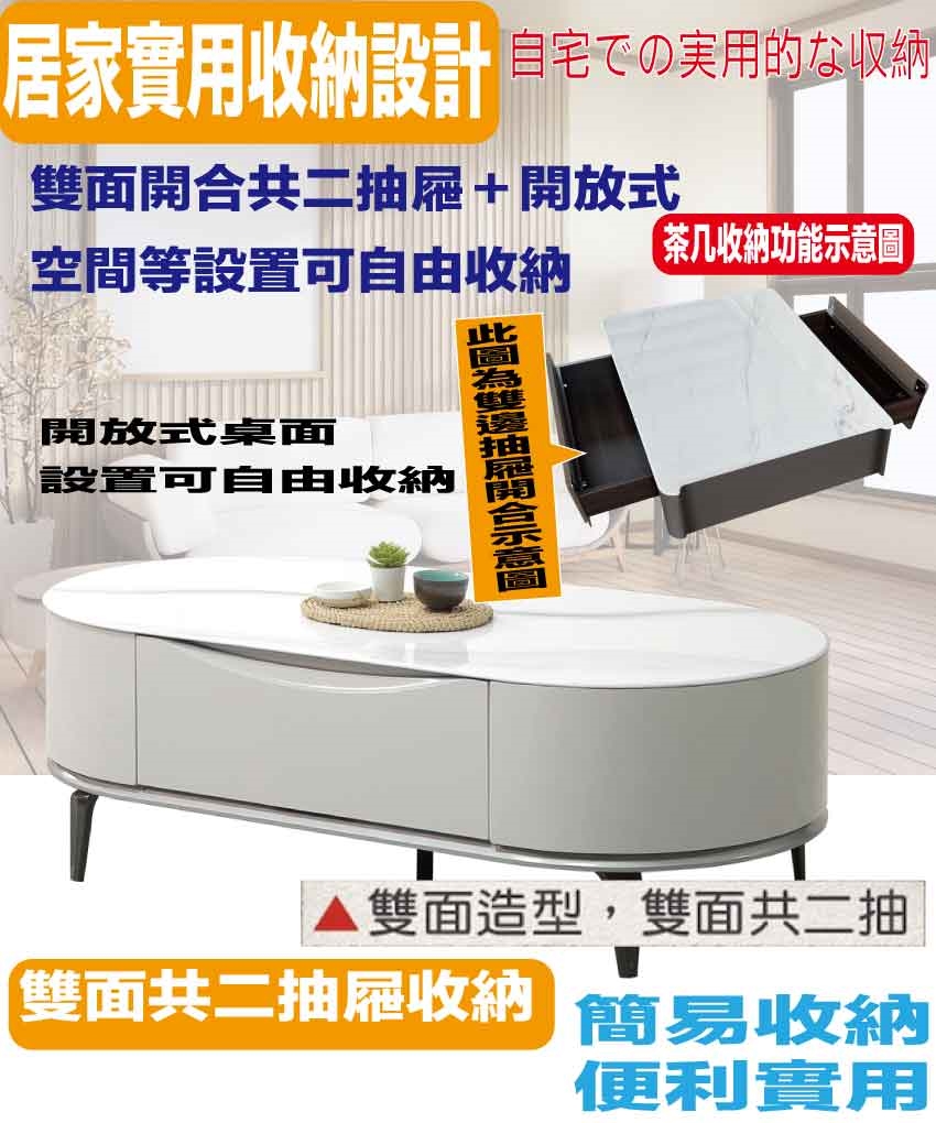 搭配採用雙面開合二抽屜+開放桌面等收納空間設計