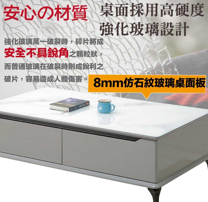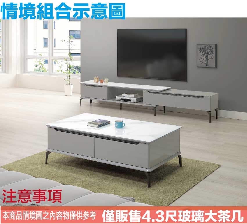 - ◆產品名稱:【綠家居】萊爾4.3尺玻璃四抽大茶几