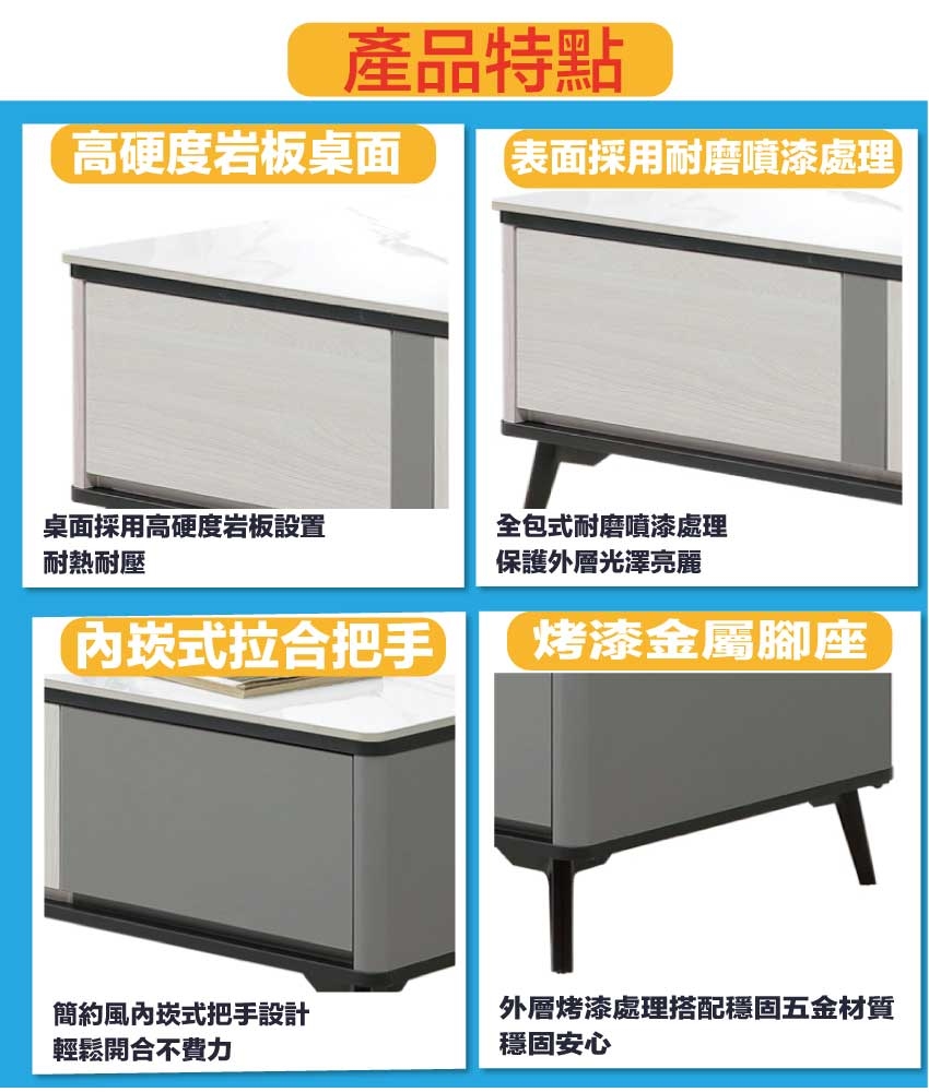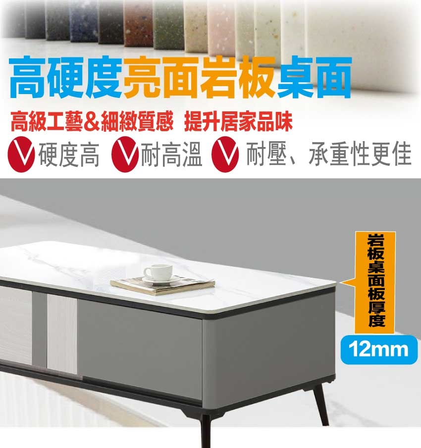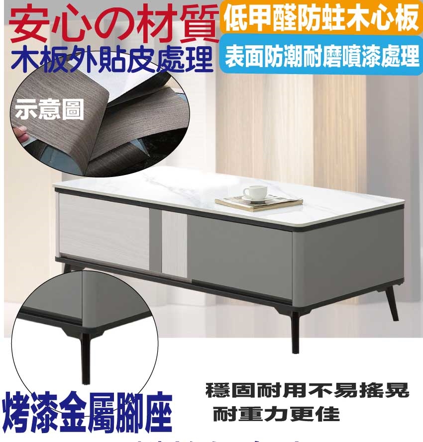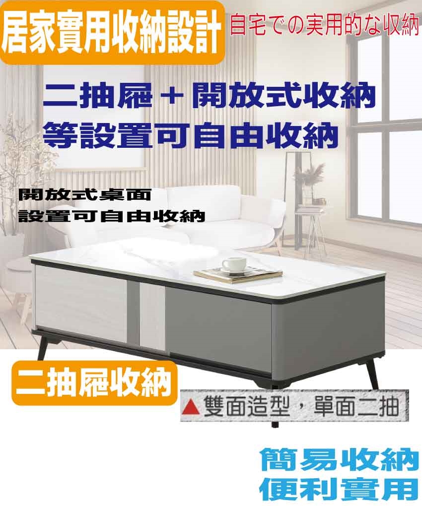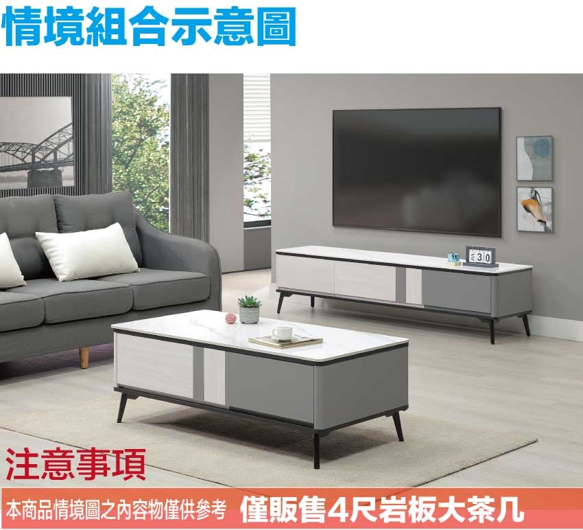 - ◆產品名稱:【綠家居】格瑞4尺岩板二抽大茶几