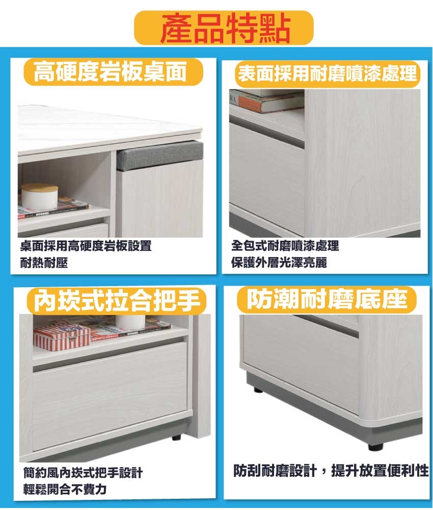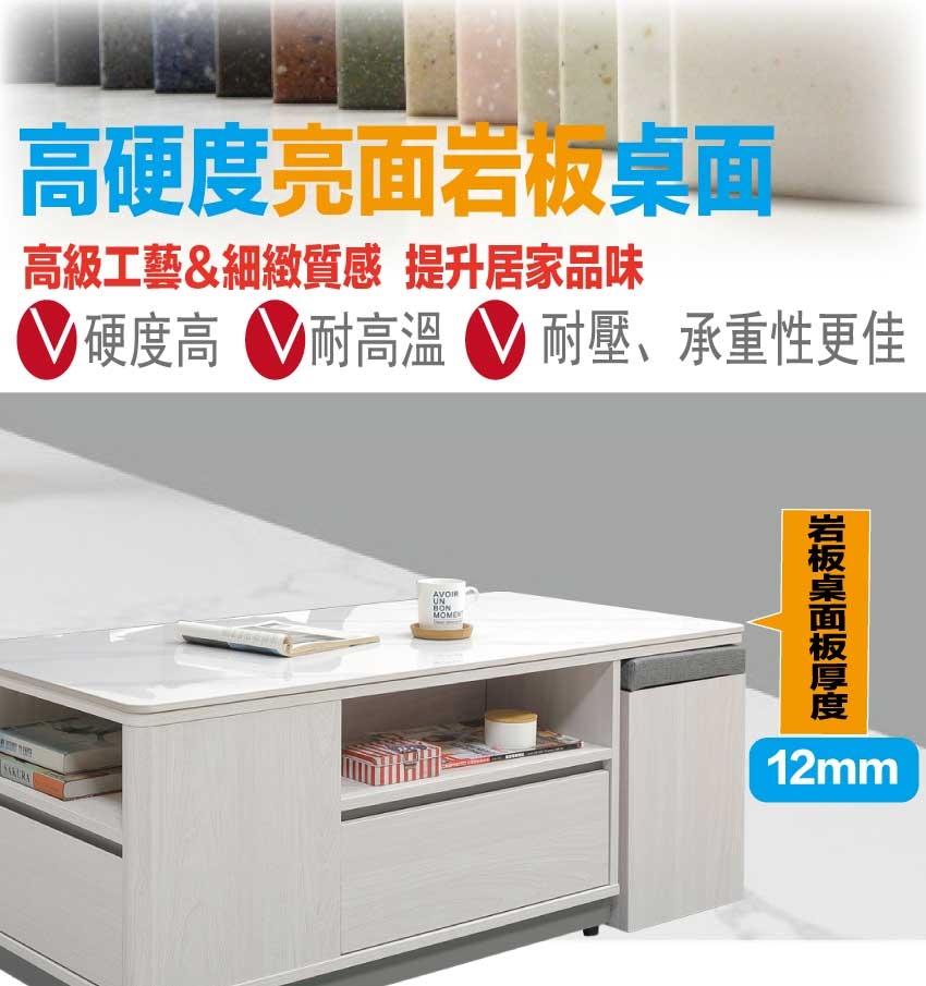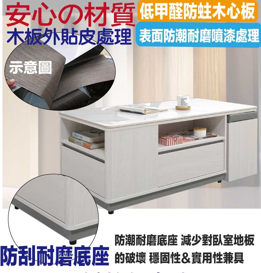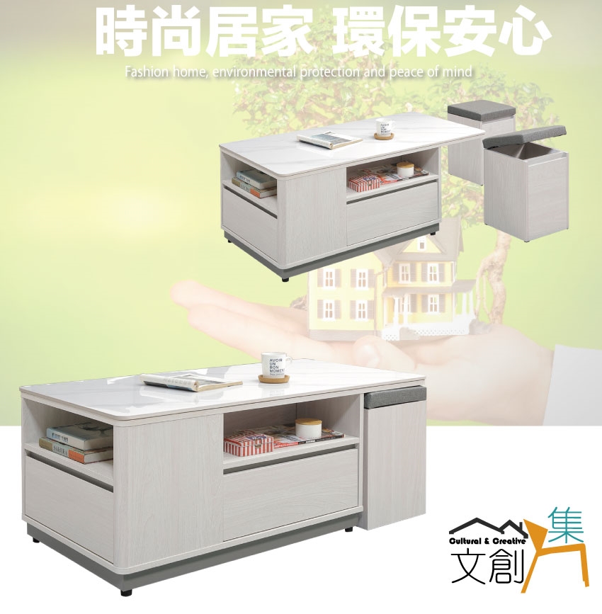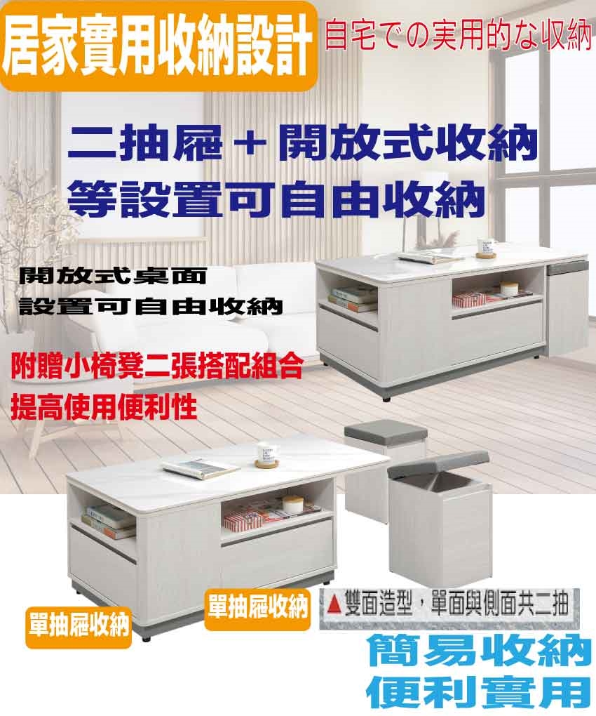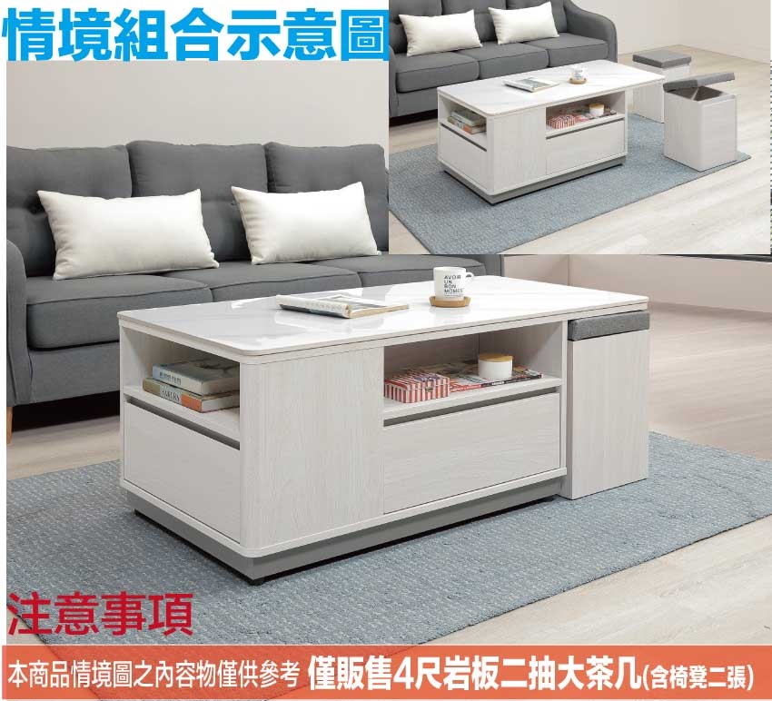- ◆產品名稱:【綠家居】亞格瑞4尺岩板開門單抽大茶几(附收納椅凳二張)