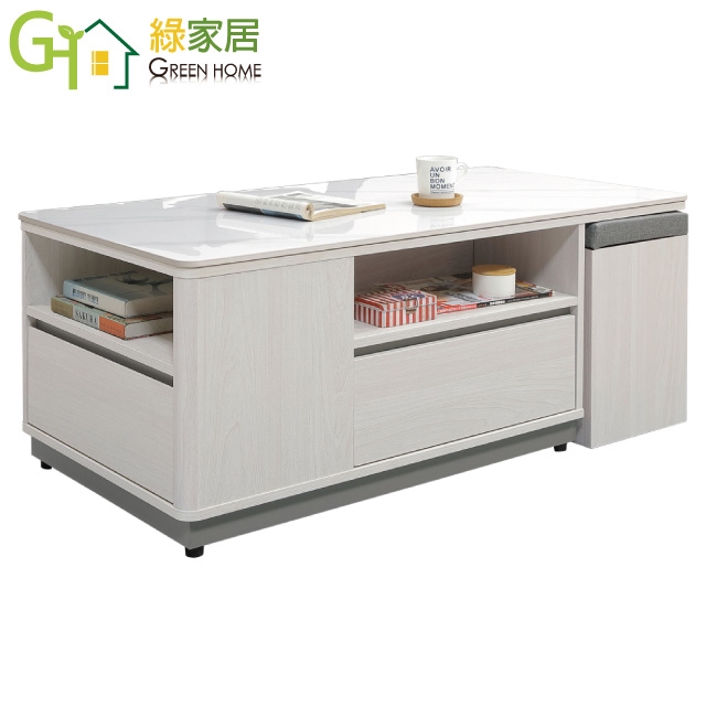 【綠家居】莫尼瑞4尺岩板二抽大茶几(附收納椅凳二張)