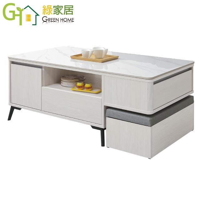 【綠家居】米克瑞4尺岩板開門二抽大茶几(附收納椅凳單張)