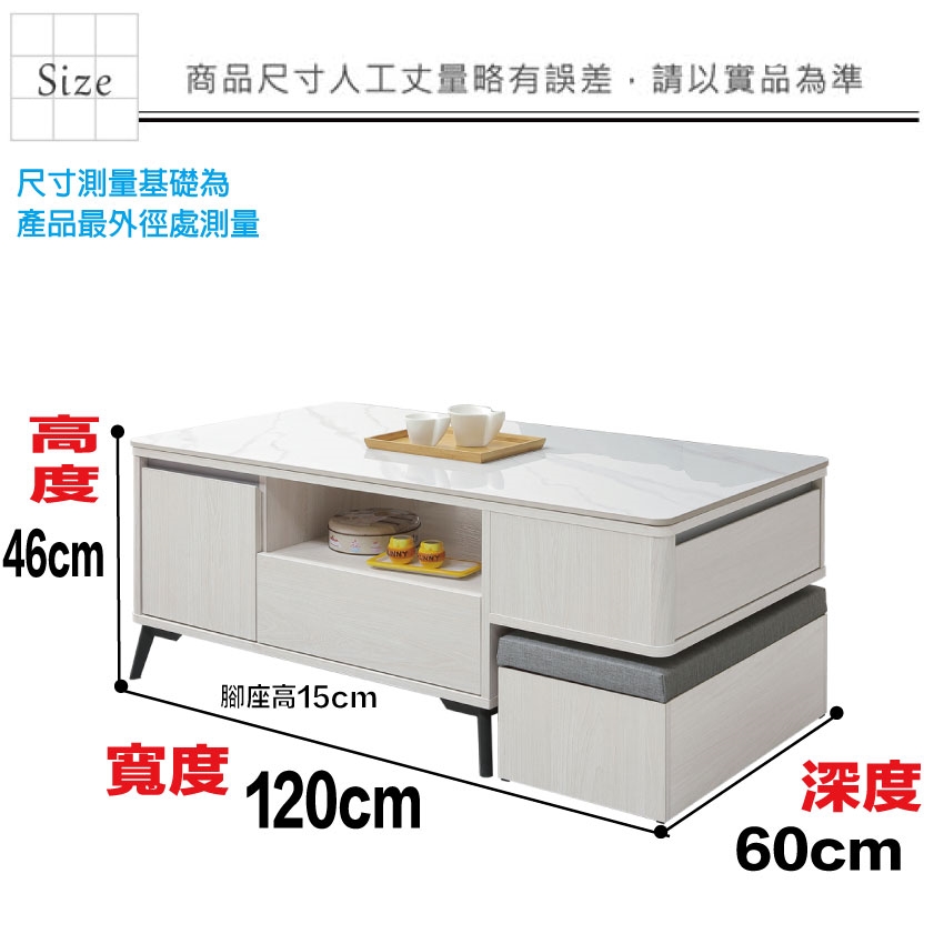 茶几尺寸:(寬)120x(深)60x(高)46/公分