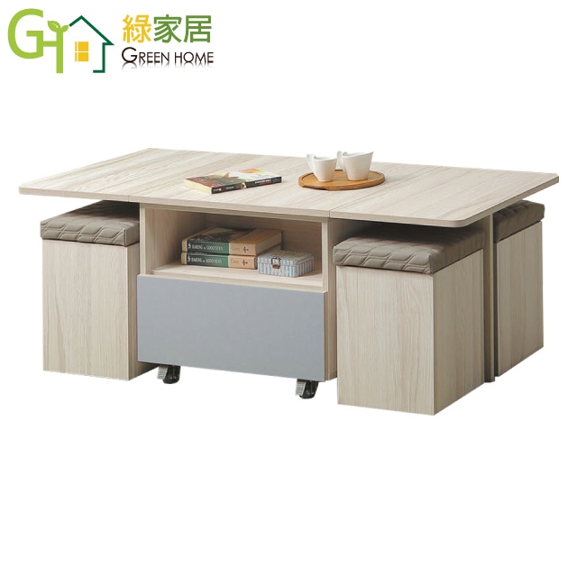 【綠家居】莫凡雙色4.5尺桌面可折合大茶几(附贈可收納椅凳四張)