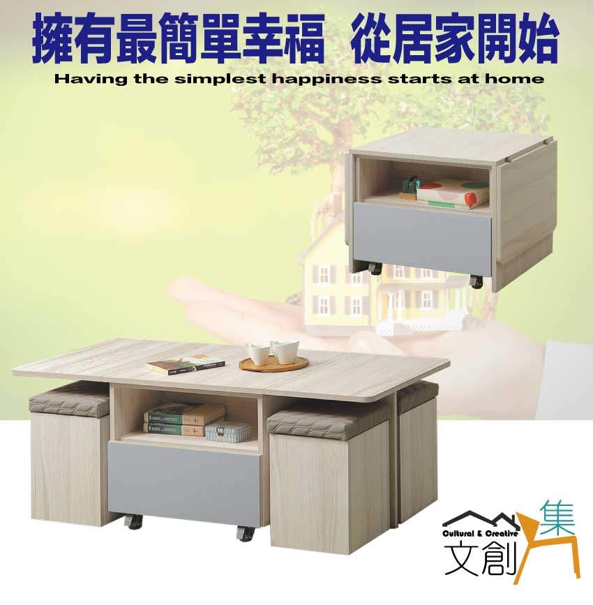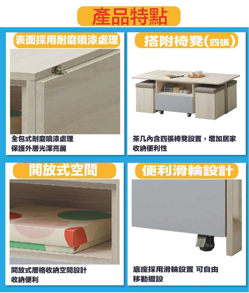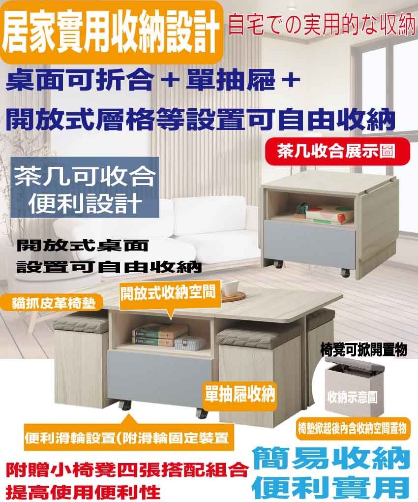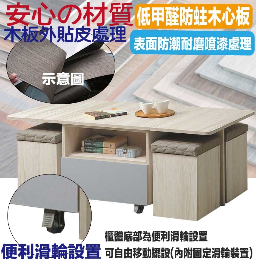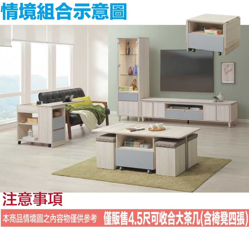 - ◆產品名稱:【綠家居】莫凡雙色4.5尺桌面可折合大茶几(附贈可收納椅凳四張)