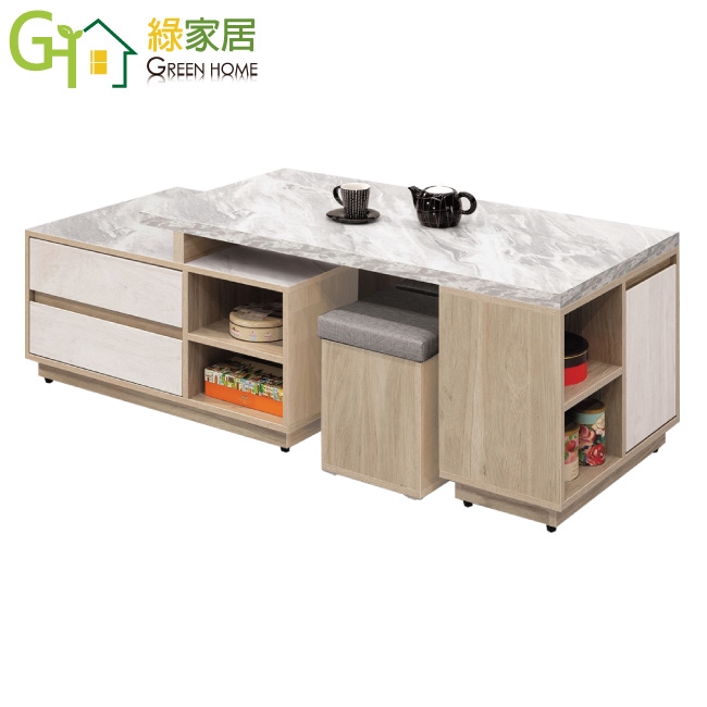 【綠家居】歐克雙色5尺二抽可伸縮大茶几(附二張椅凳)