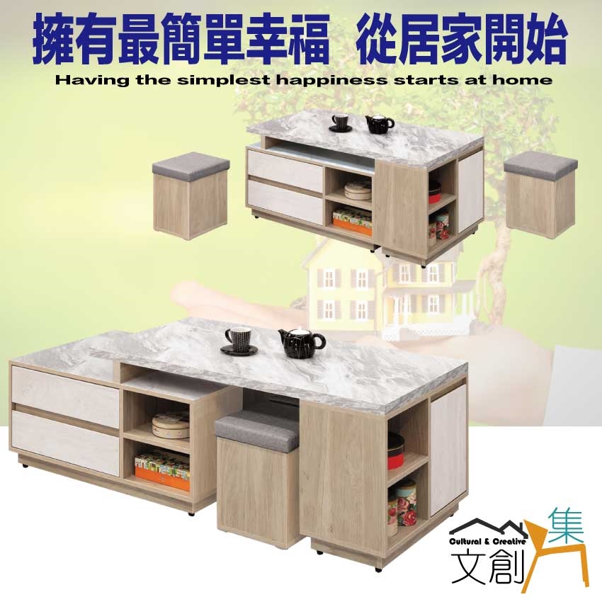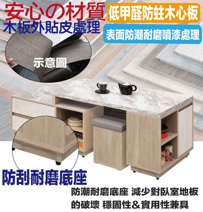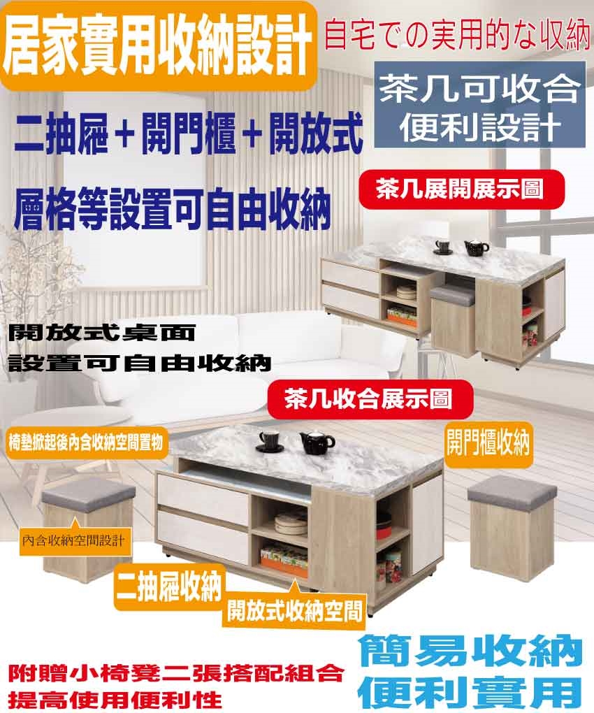茶几桌面櫃身可拉合伸縮使用,增加居家便利性