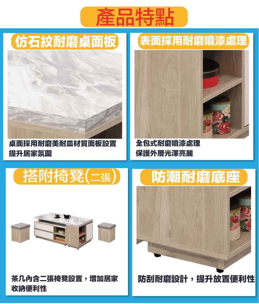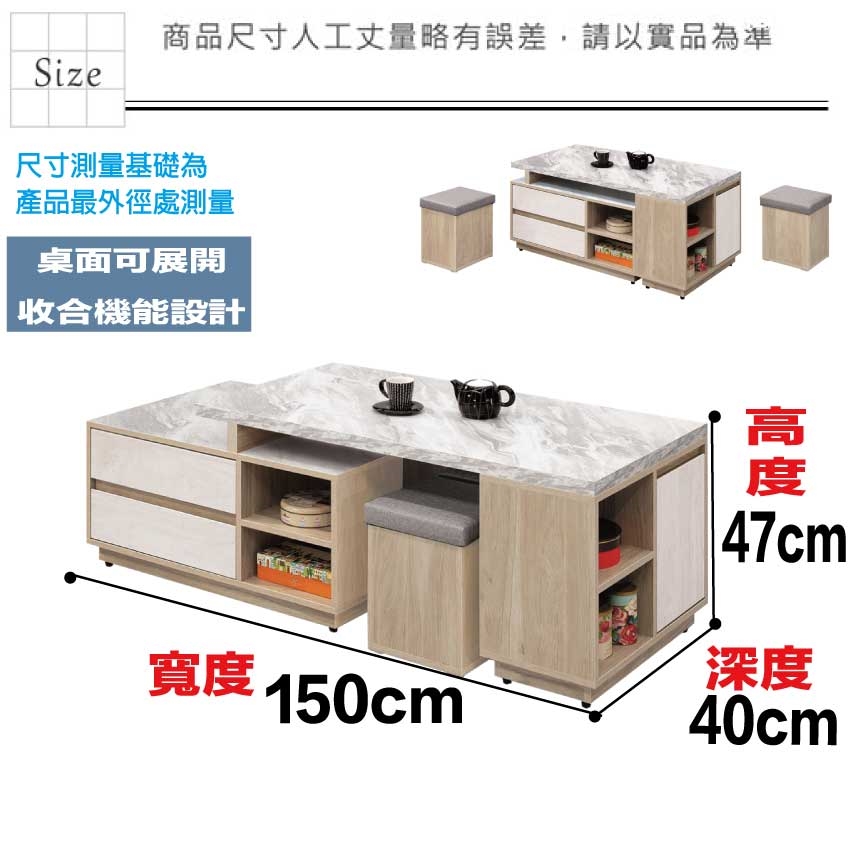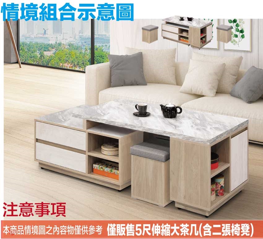- ◆產品名稱:【綠家居】歐克雙色5尺二抽可伸縮大茶几(附二張椅凳)