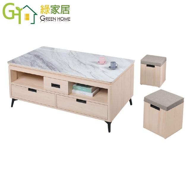 【綠家居】力斯雙色4.2尺三抽岩板大茶几(附二張椅凳)