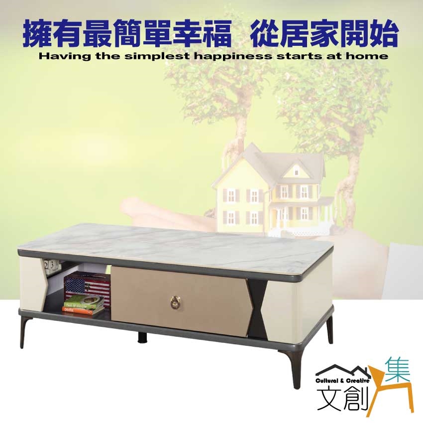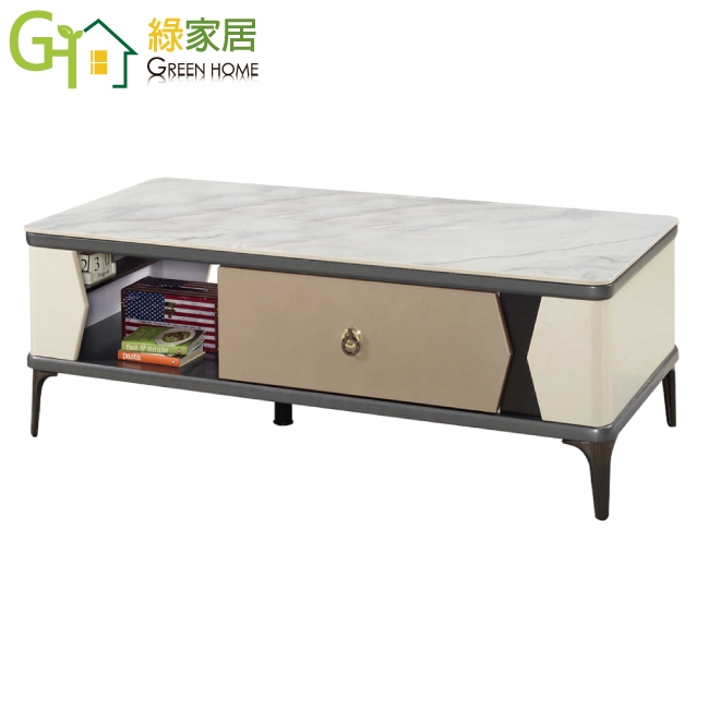 【綠家居】庫克4.3尺岩板二抽大茶几