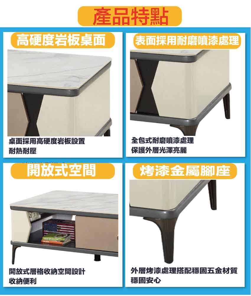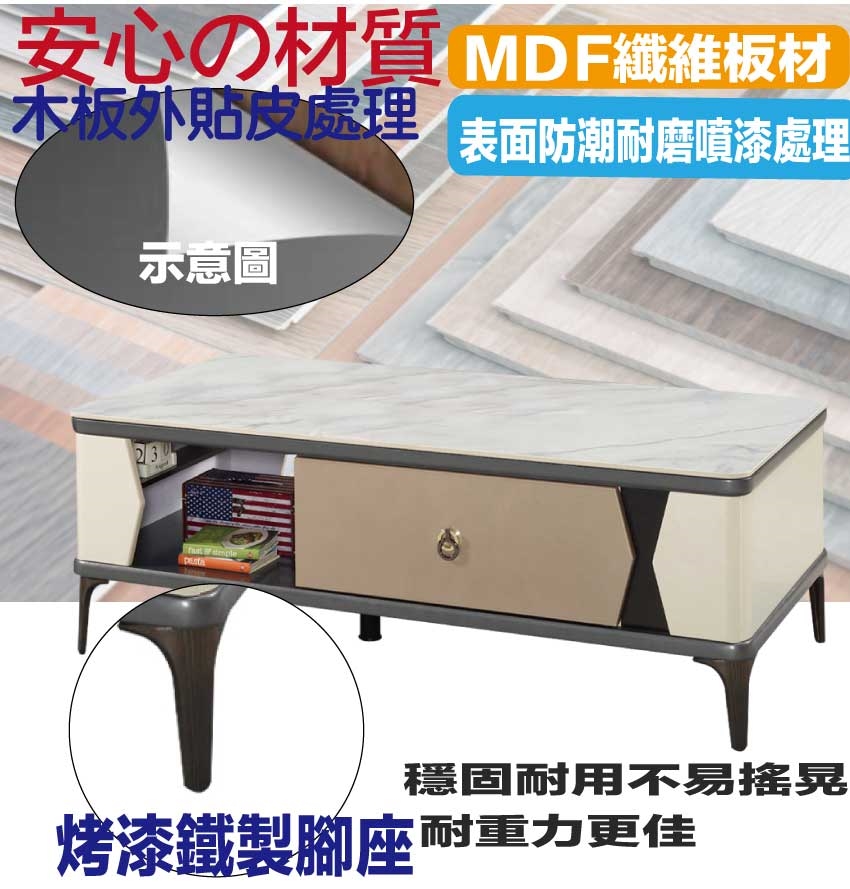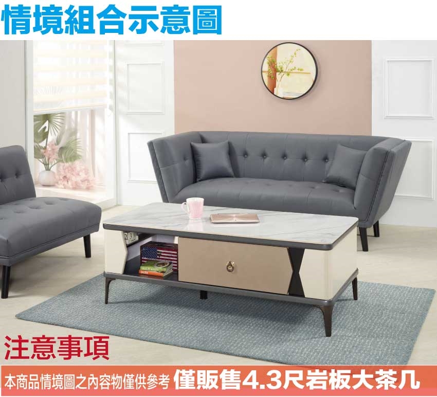 - ◆產品名稱:【綠家居】庫克4.3尺岩板二抽大茶几