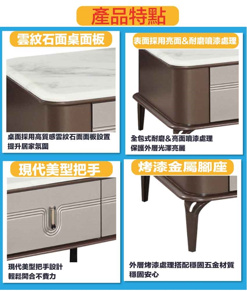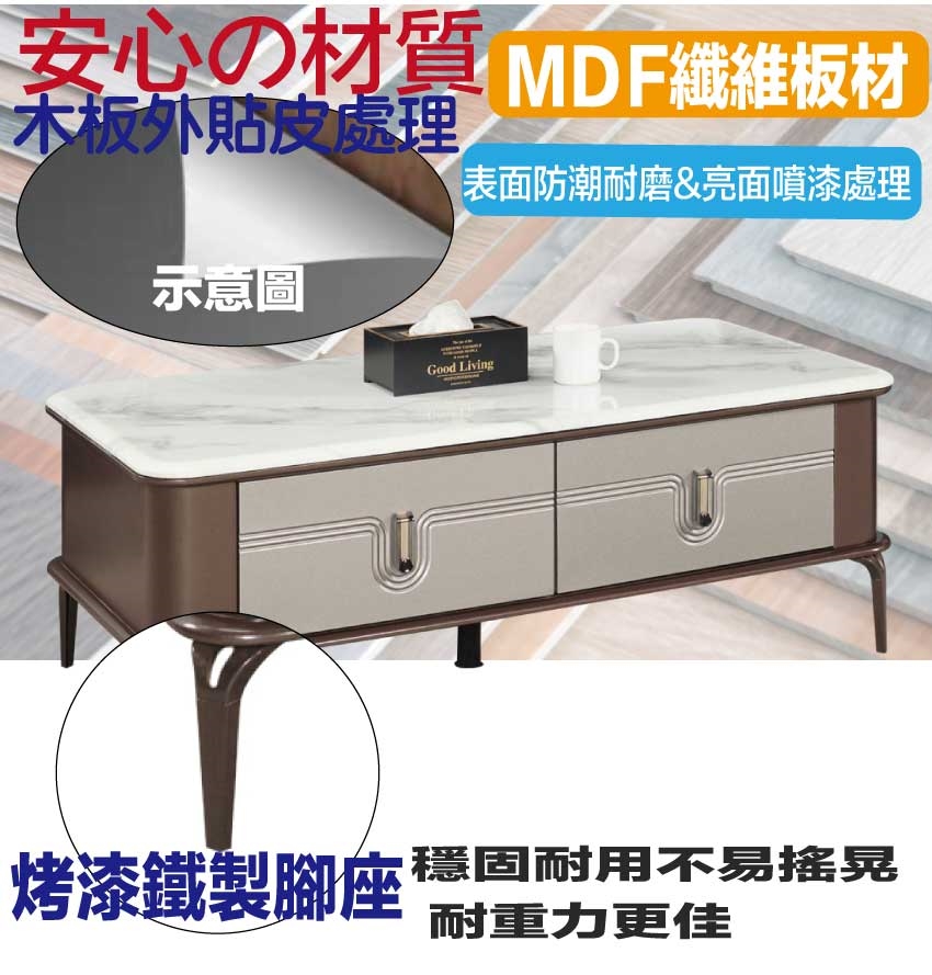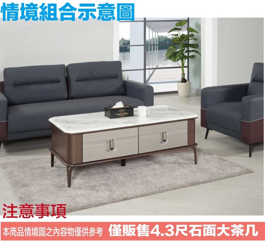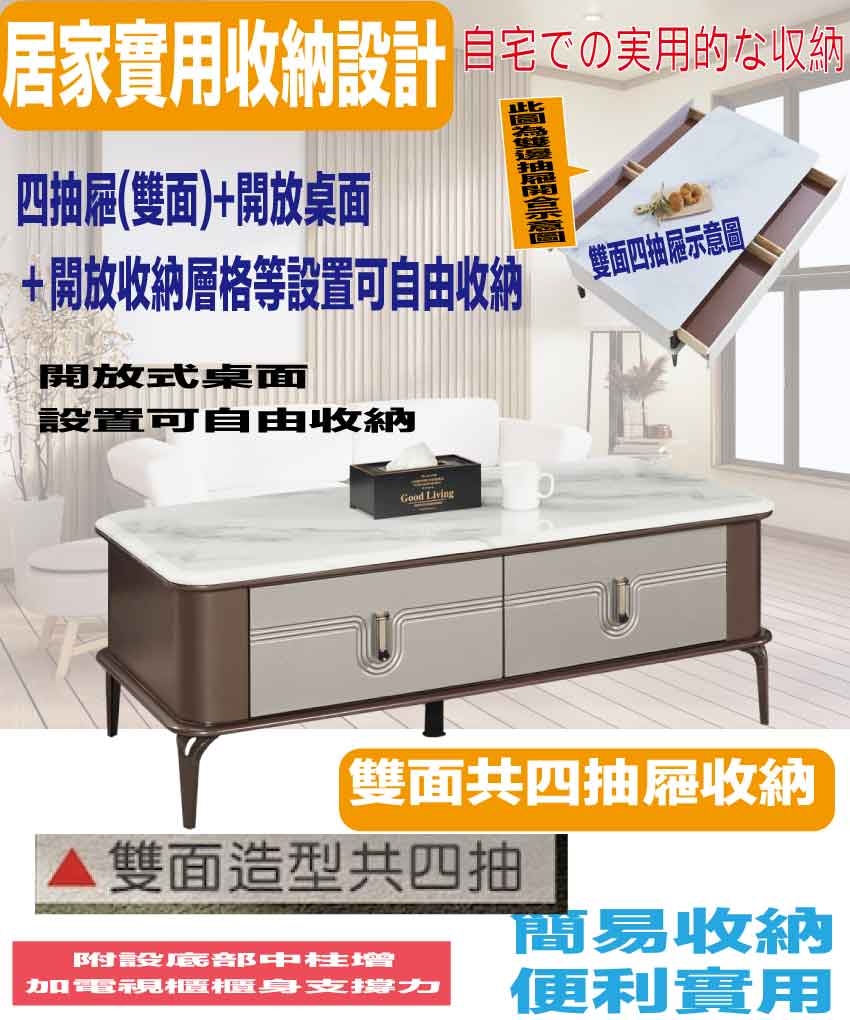 - ◆產品名稱:【綠家居】邦倫4.3尺石面四抽大茶几