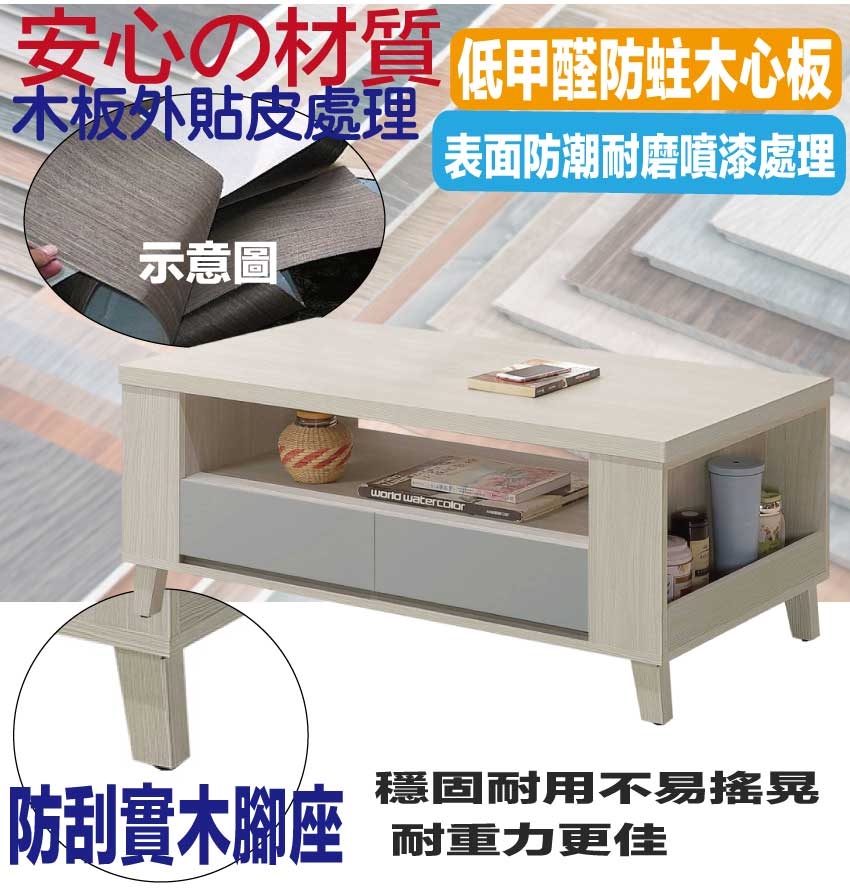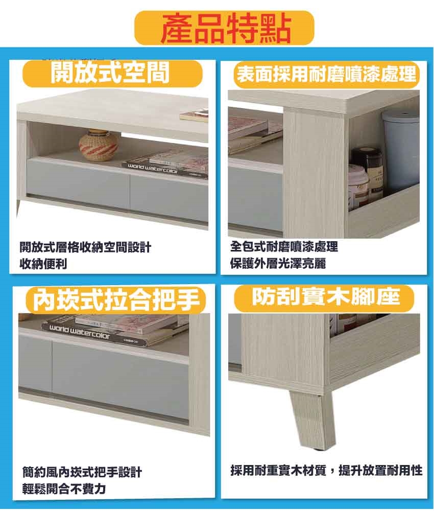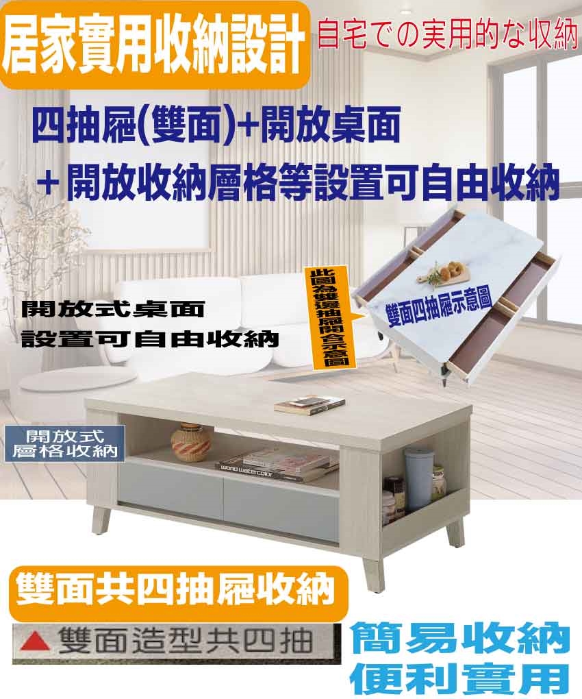 【綠家居】奇伊雙色4尺四抽大茶几