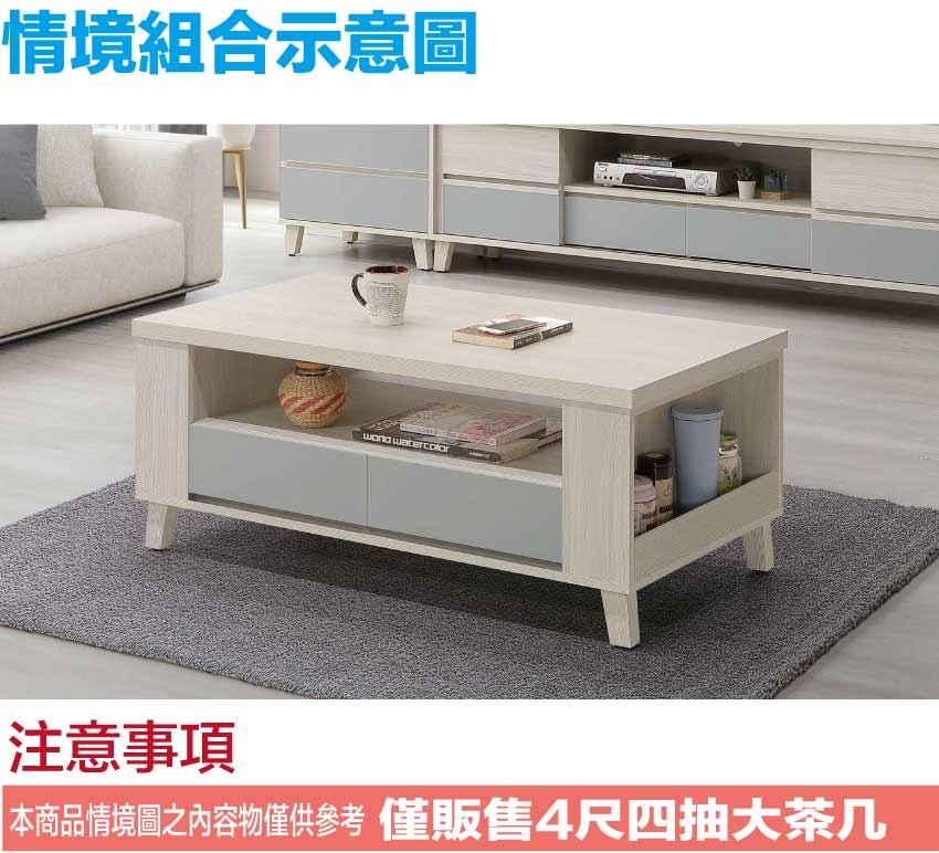 - ◆產品名稱:【綠家居】奇伊雙色4尺四抽大茶几